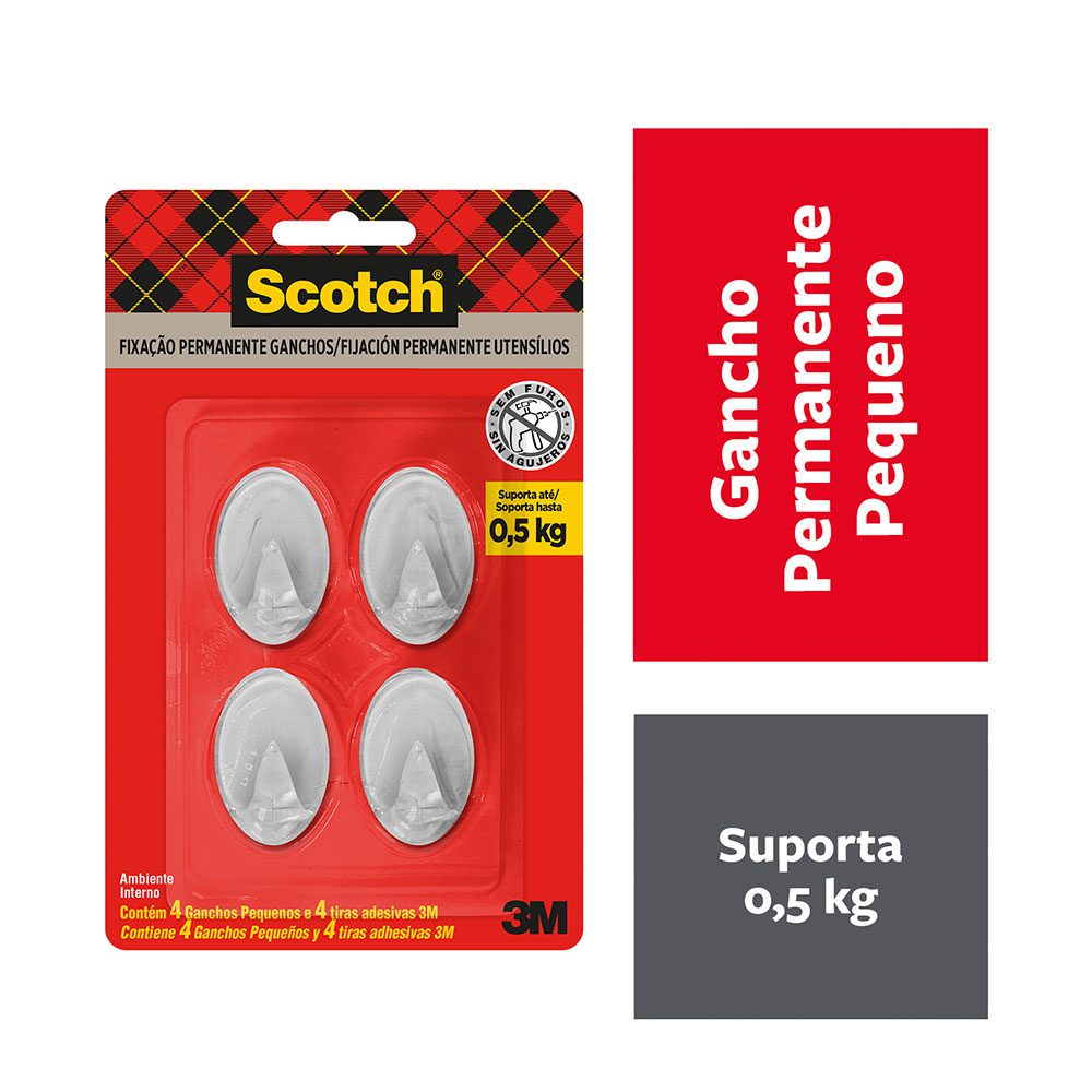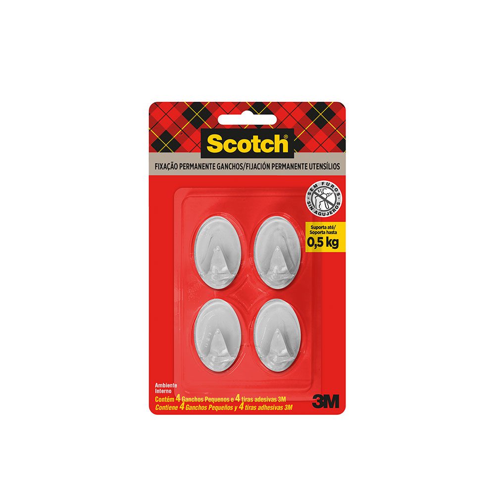 Gancho Adesivo de Plástico Incolor Scotch 3M até 1kg SKU: 3943127