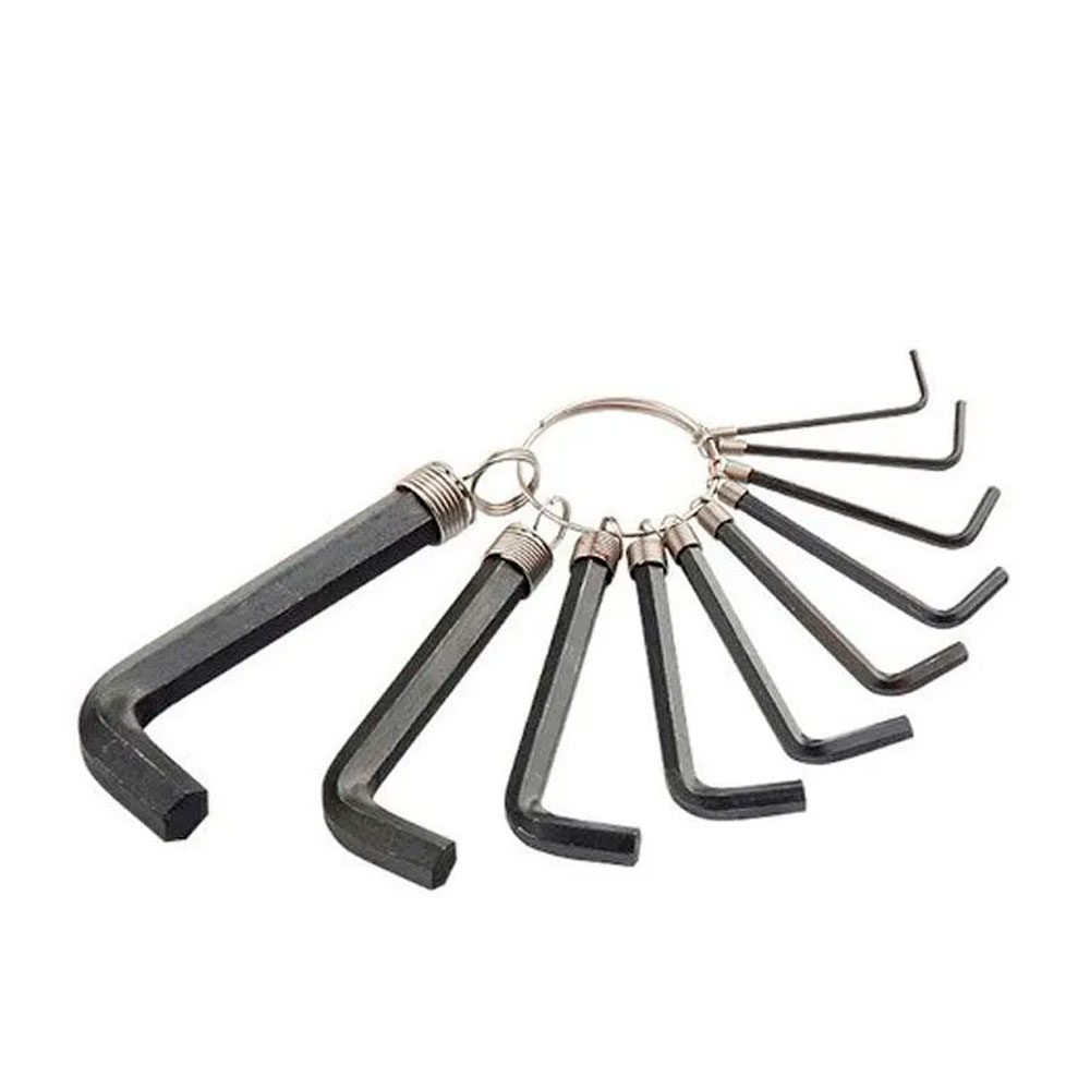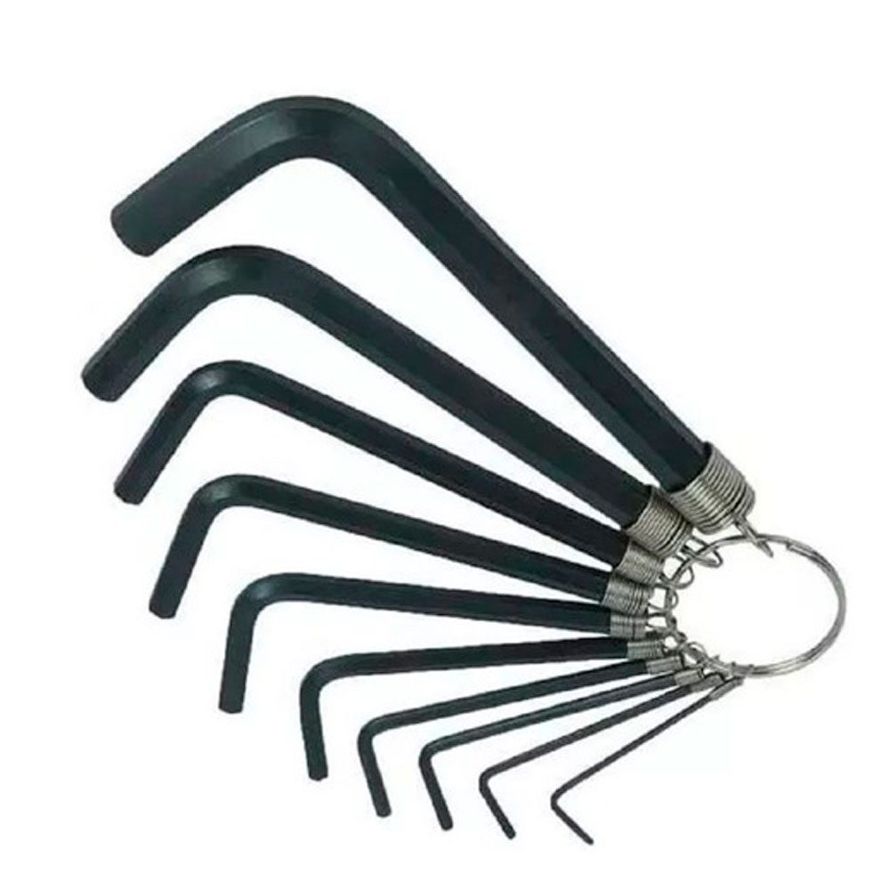Itens inclusos: 1 chave de 1,5mm, 1 chave de 2mm, 1 chave de 2,5mm, 1 chave de 3mm, 1 chave de 3,5mm, 1 chave de 4mm, 1 chave de 5mm, 1 chave de 6mm, 1 chave de 8mm e 1 chave de 10mm