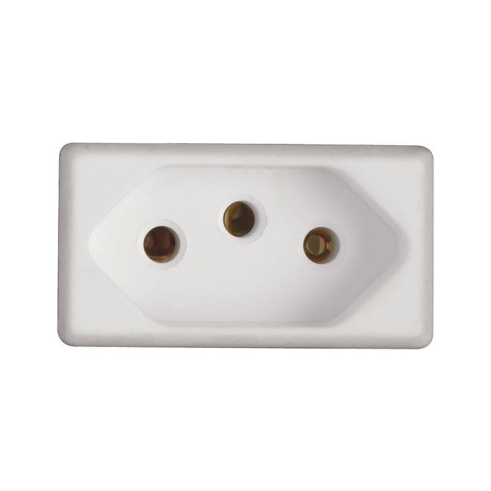 Produto: Módulo Tomada Marca: Tramontina Material: Plástico nylon Termoplástico Acabamento: Brilhoso Cor: Branco Características: Corrente de 10A Tensão máxima de 250v Lux/liz Tomada 2P+T Dentro das normas NBR 14136 Itens inclusos: 1módulo Tomada Dimensões do produto (A X L): 3,5 x 4,5cm Peso do produto: 18g