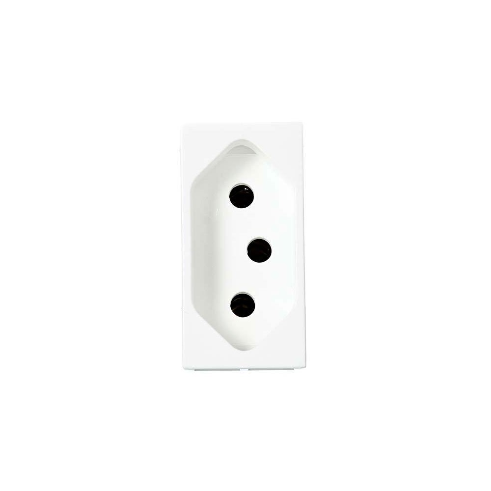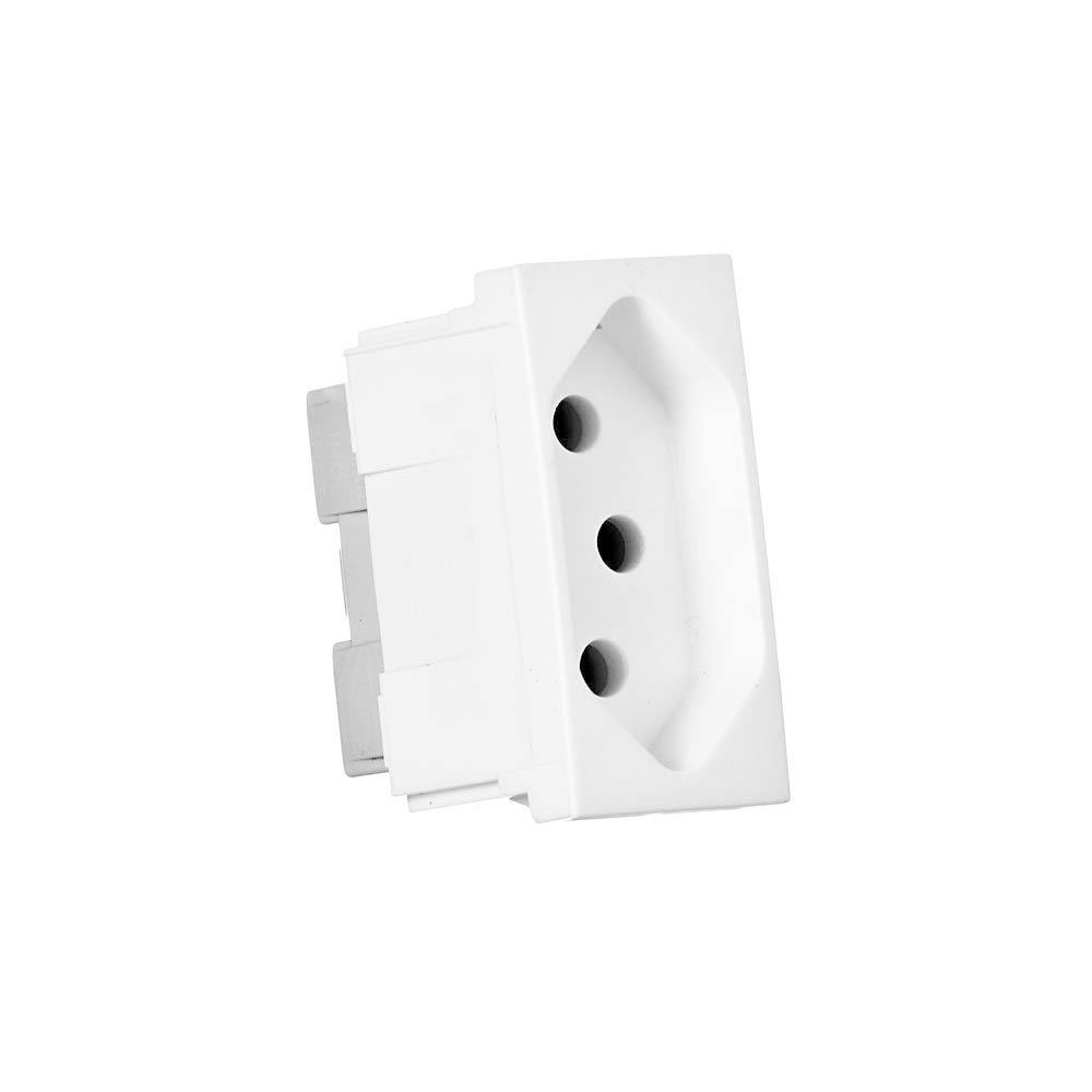 Produto: Módulo Tomada Marca: Pial Material: Plástico Metal Cor: Branco Características: Corrente de 20A Tomada 2P+T Itens inclusos: 1módulo Tomada Dimensões do produto (A X L): 3,8 x 4,2cm