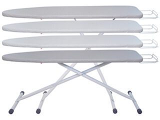 Características: 13 graduações de altura, abertura e fechamento com um único toque, suporte retrátil para ferro, tampo perfurado, auto travamento