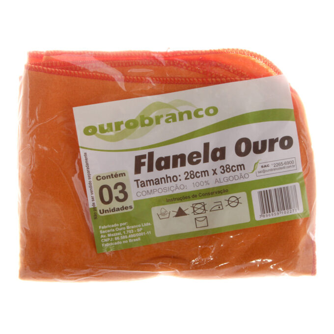 Kit de Flanelas para Limpeza Laranja Ouro Branco 28x48cm 3 unidades