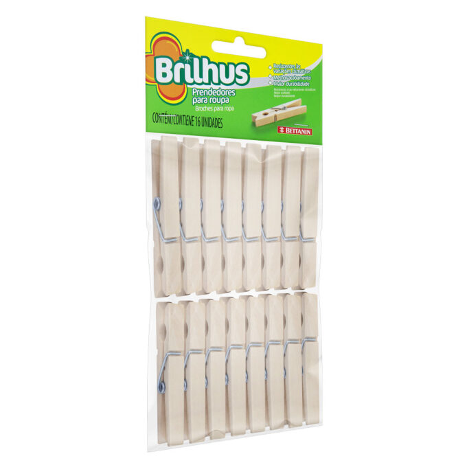 Prendedores de Roupa Brilhus Madeira Bettanin 16 Peças