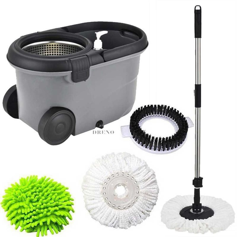 Balde Mop Esfregão com Centrifugador Inox e Cabo de 1,60m Perfect Move 16L
