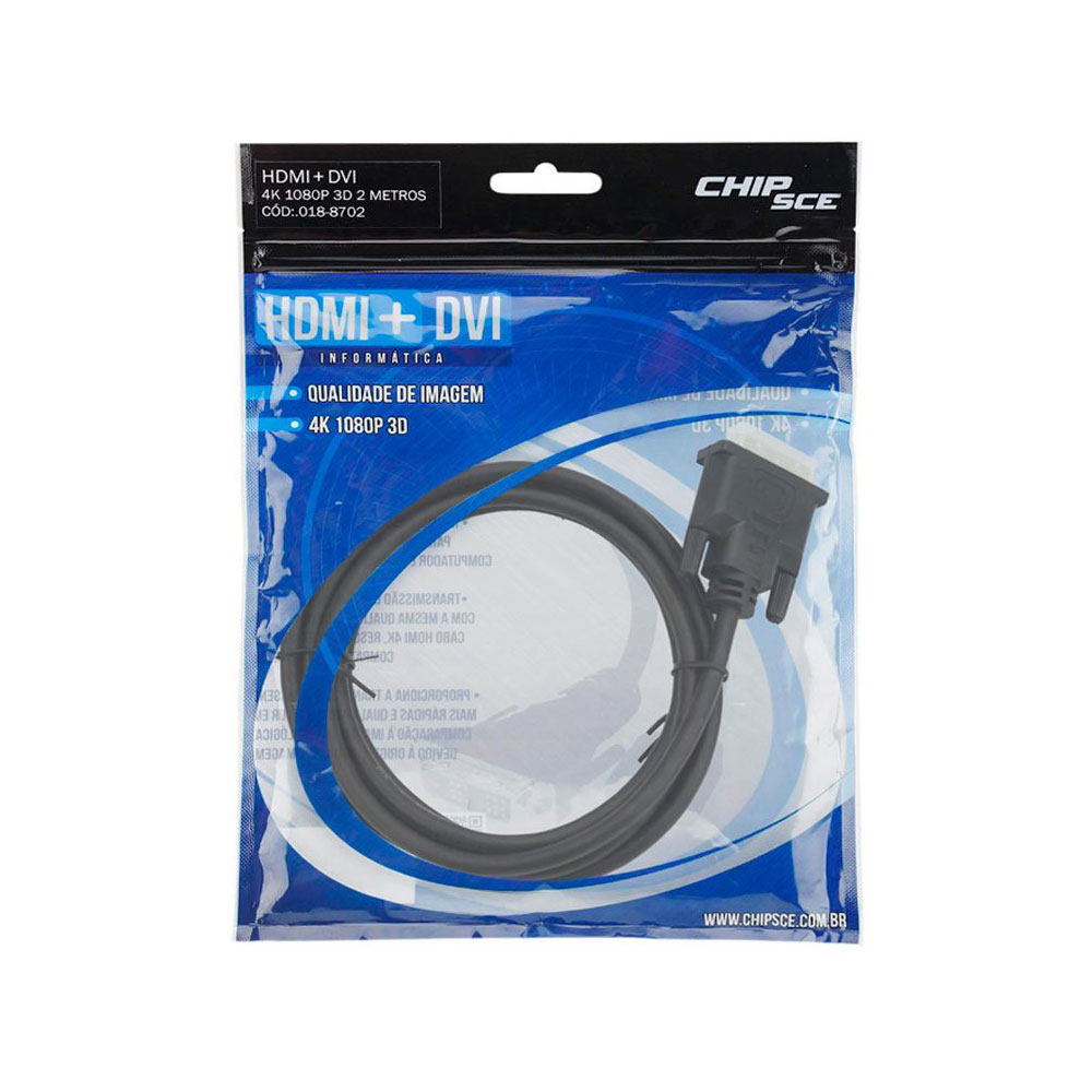 O Cabo DVI 24+1 x HDMI 4K ChipSCE é ideal para todas as conexões entre computador e monitores de led e lcd digital. O cabo adaptador ChipSCE entrega resolução de 1080p, é compatível com 3D e garante a qualidade de imagem que você busca. Rápido, proporciona transição rápida e resultados superiores às imagens analógicas.