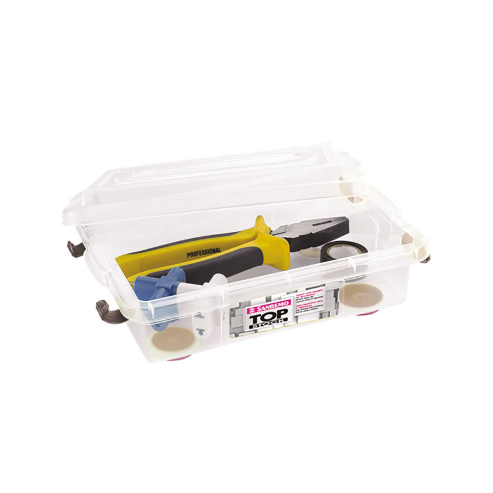 Deixe pequenos objetos sempre organizados com a Caixa Organizadora da Sanremo. Com corpo em plástico incolor, medindo8,5 x 26,2 x 17,7cm e tem capacidade de 2,3 litros, sendo ideal para deixar esmaltes, remédios e souvenirs sempre em ordem. Suas travas têm excelente fixação e impedem a tampa de se soltar enquanto a caixa é manuseada. Além disso, suas bases largas proporcionam melhor distribuição de peso e impedem a sua caixa organizadora de manchar as prateleiras.