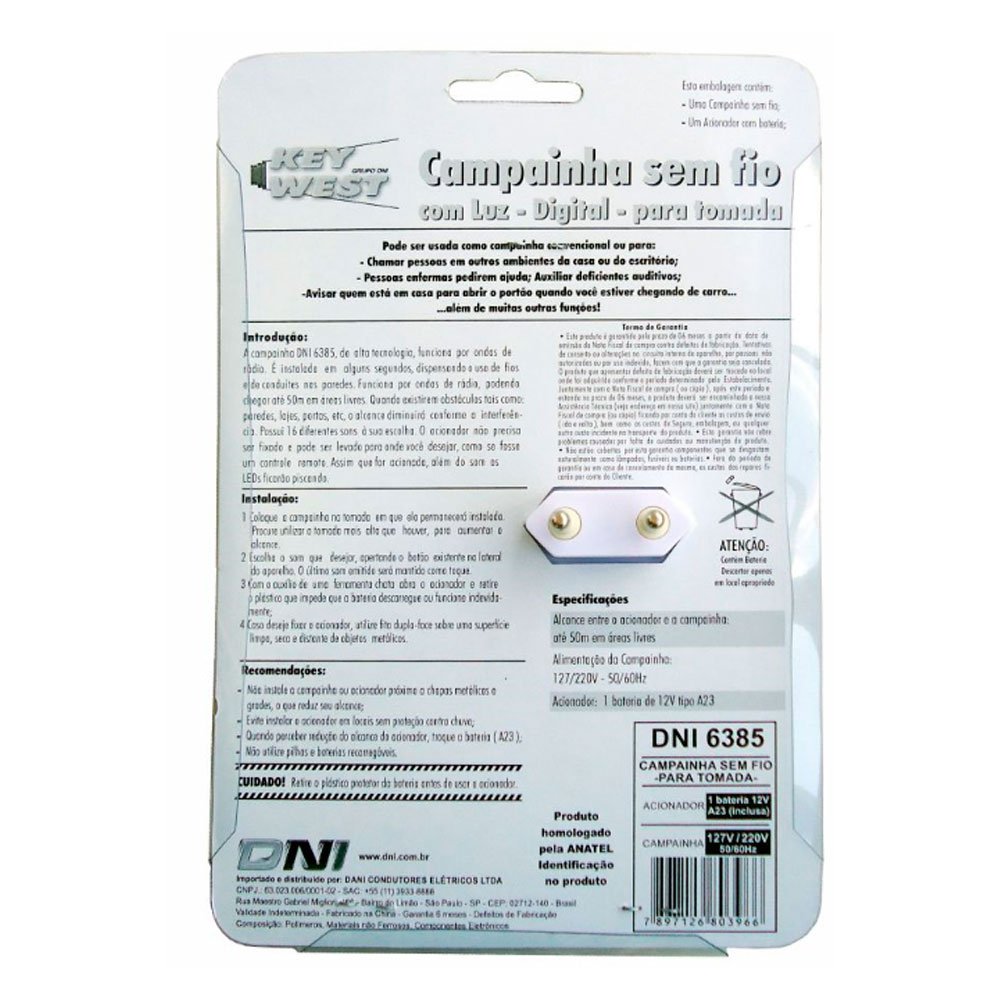 Campainha Sem Fio Bivolt DNI 6385 Key West SKU: 3048080