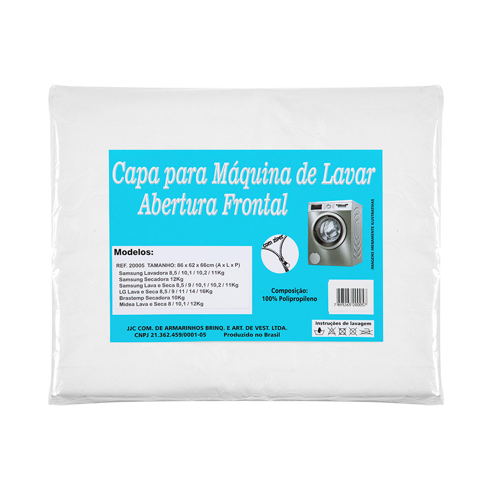 Use a Capa para Máquina de Lavar PVC modelo 20005 da JJC em máquinas de abertura frontal: Samsung Lavadora 8,5, 10,1, 10,2 e 11kg; Samsung Secadora 12kg; Samsung Lava e Seca 8,5, 9, 10,1, 10,2 e 11kg; LG Lava e Seca 8,5, 9, 11, 14 e 16kg; Brastemp Secadora10kg; Midea Lava e Seca 8, 10,1 e 12kg. Confeccionada em Korino, material resistente e impermeável, não retém poeira e protege contra água. Possui lado interior flanelado para não danificar sua máquina.Possui zíper que evita a entrada de poeira e deixa seu eletrodoméstico protegido contra o sol e outras condições do tempo. A capa para máquina de lavar roupas mede 86x62x66cm. Fácil de limpar, ideal para deixar sua lavanderia mais clean e limpa.