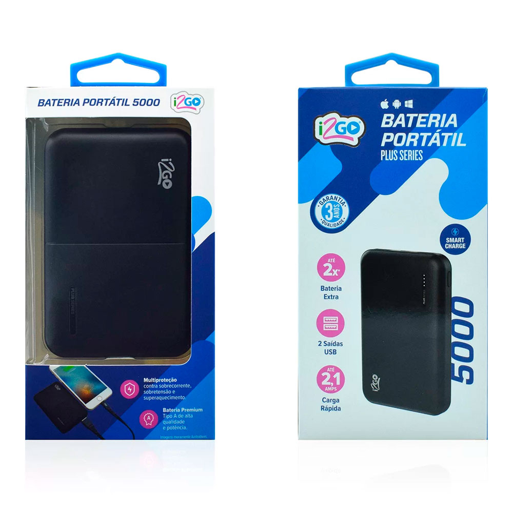 Carregador Portátil Power Bank 2 Saídas USB Preto I2GO 1500mAh