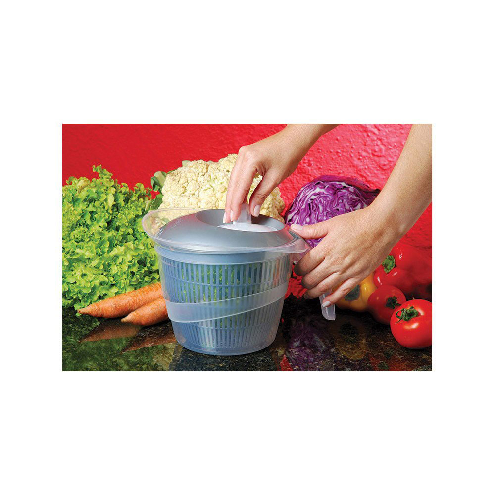 Lave e seque sua salada com rapidez e aumente a sua conservação. A Centrífuga para Salada da Plasútil funciona de forma simples. Ao girar a manivela, faz com que a água desça para o fundo do recipiente, deixando sua salada higienizada. Feita de plástico resistente, o seca salada tem capacidade de até 2, 8 litros, possui corpo e tampa perfurados para facilitar o processo e tem dimensões de 25, 4 x 20,8 x 18,2 cm. Praticidade e eficiência para seu dia-a-dia na cozinha.
