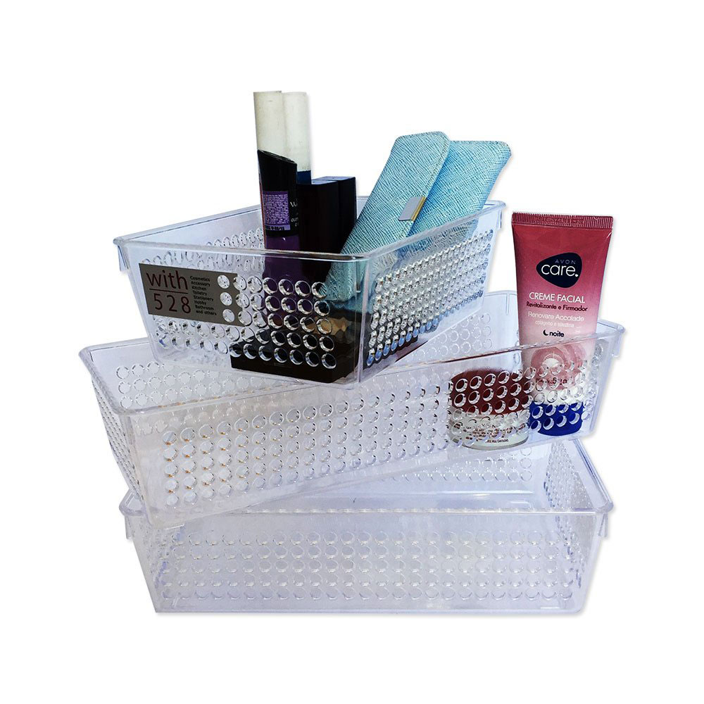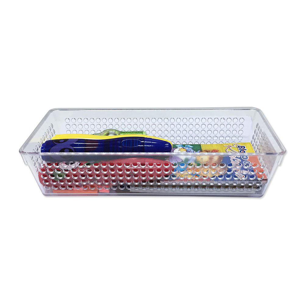 Use o Cesto Organizador de Plástico Incolor da Sandia para arrumar seus acessórios na cozinha, banheiro, quarto e escritório. É ideal para ter sempre à vista aquilo que você mais usa e para transportá-lo sem dificuldades. Mede 26x11x6cm.