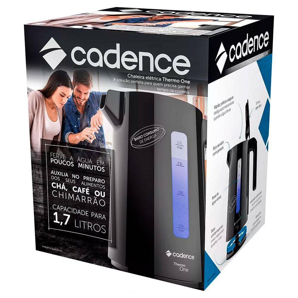 A Chaleira elétrica Cadence modelo CEL380 possui design exclusivo na cor preta, feita para auxiliar completamente no dia-a-dia para quem não quer perder tempo no preparo de alimentos e bebidas. Ferva água em poucos minutos, podendo ser usada para acelerar o cozimento de alimentos como macarrão, sopa, arroz e bebidas quentes como chá e café. Possui capacidade de 1,7L e sistema luminoso que indica o processo de fervura. Possui abertura fácil, base antiderrapante e a jarra é independente da base, podendo ser levada para a mesa. Possui potência de 1200w e é compatível com cabo de alimentação de 127v. Com porta fio na base e sistema de desligamento automático garantindo maior segurança.