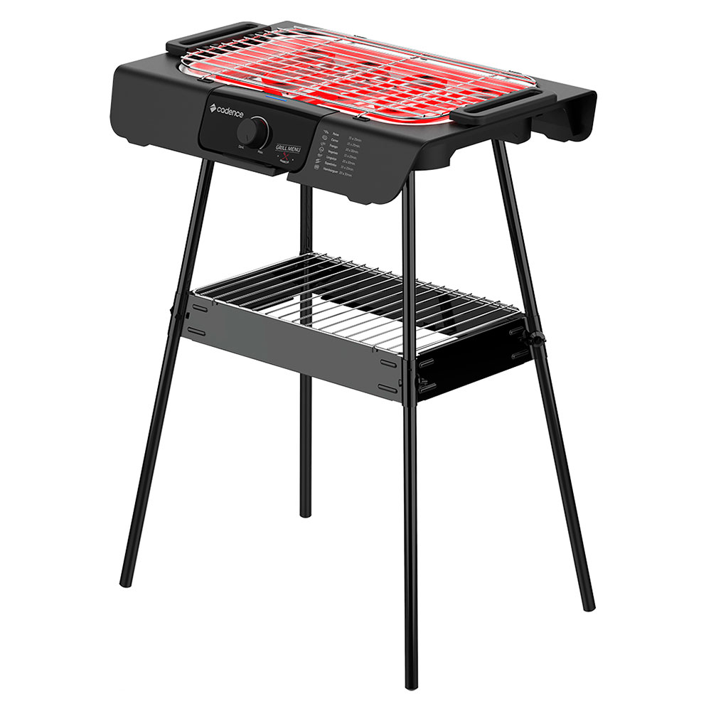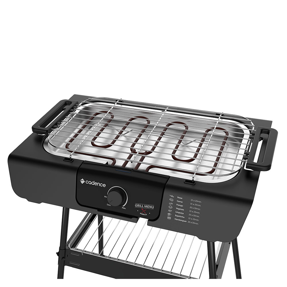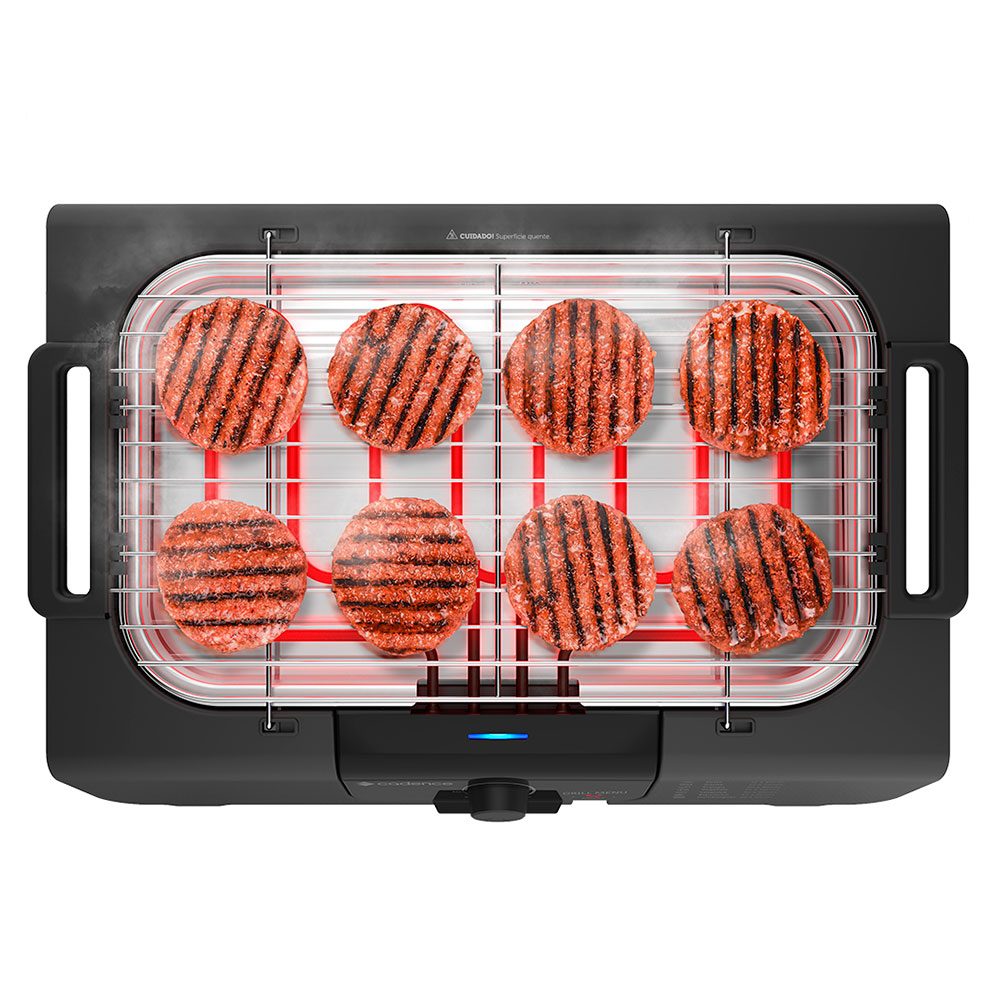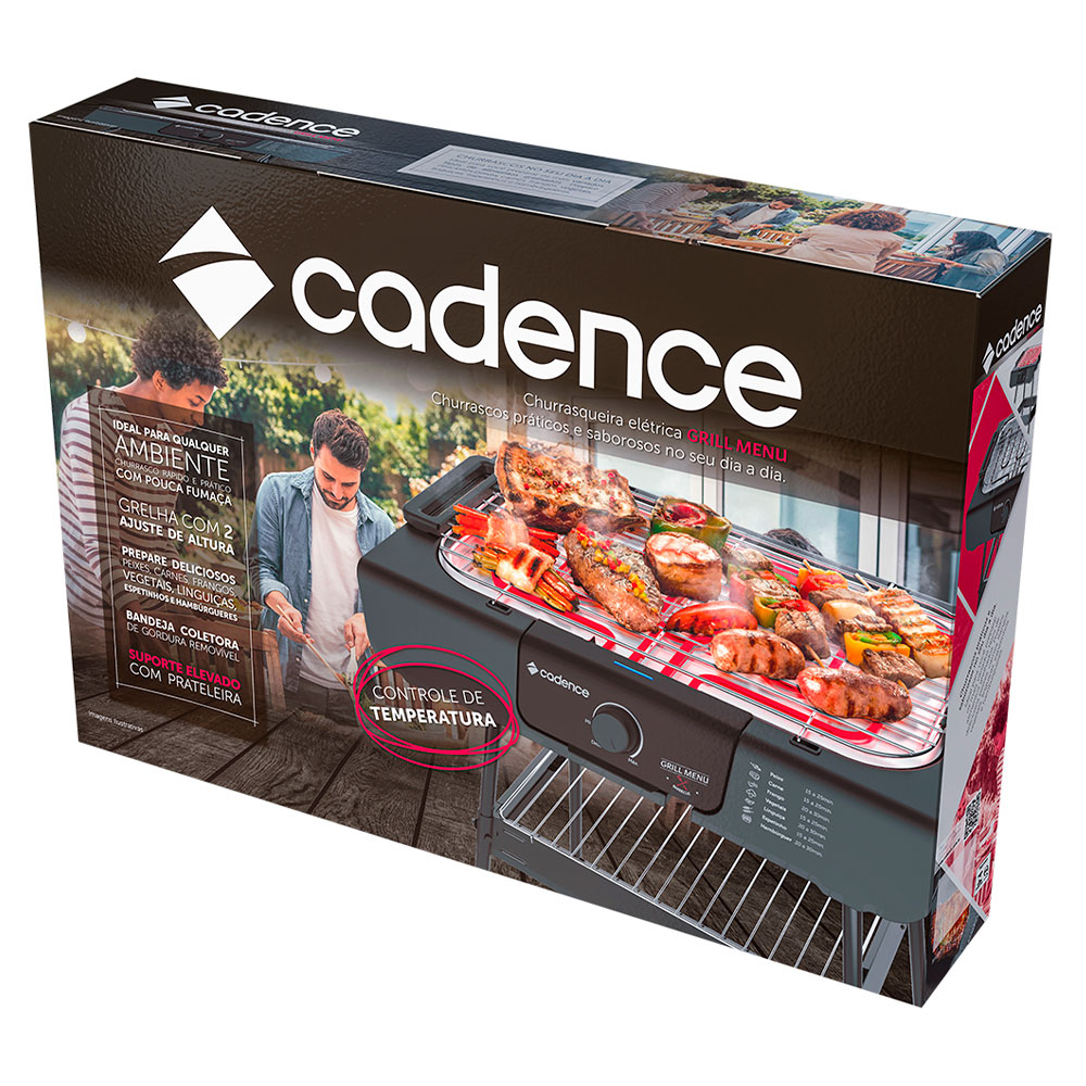 Com a Churrasqueira Elétrica Cadence Grill Menu você pode ter churrasco dentro ou fora de casa. Você pode fazer churrascos, petiscos, espetinhos, hambúrgueres ou grelhados com mais facilidade! É indicada para quem tem pouco espaço em casa ou no apartamento, e pode ainda ser levada para qualquer lugar que tenha energia elétrica, como acampamentos e piqueniques com a família e os amigos. Ideal para os almoços em família e para os churrascos com os amigos. O grelhado sem carvão, ressalta o verdadeiro sabor da carne. Muito potente, assa e grelha carnes, legumes e hambúrgueres de maneira rápida e prática. Possui termostato contínuo: níveis mínimo e máximo de temperatura, podem ser controlados ao girar o botão. Temperatura mínima de 50°C e máxima até 250°C.