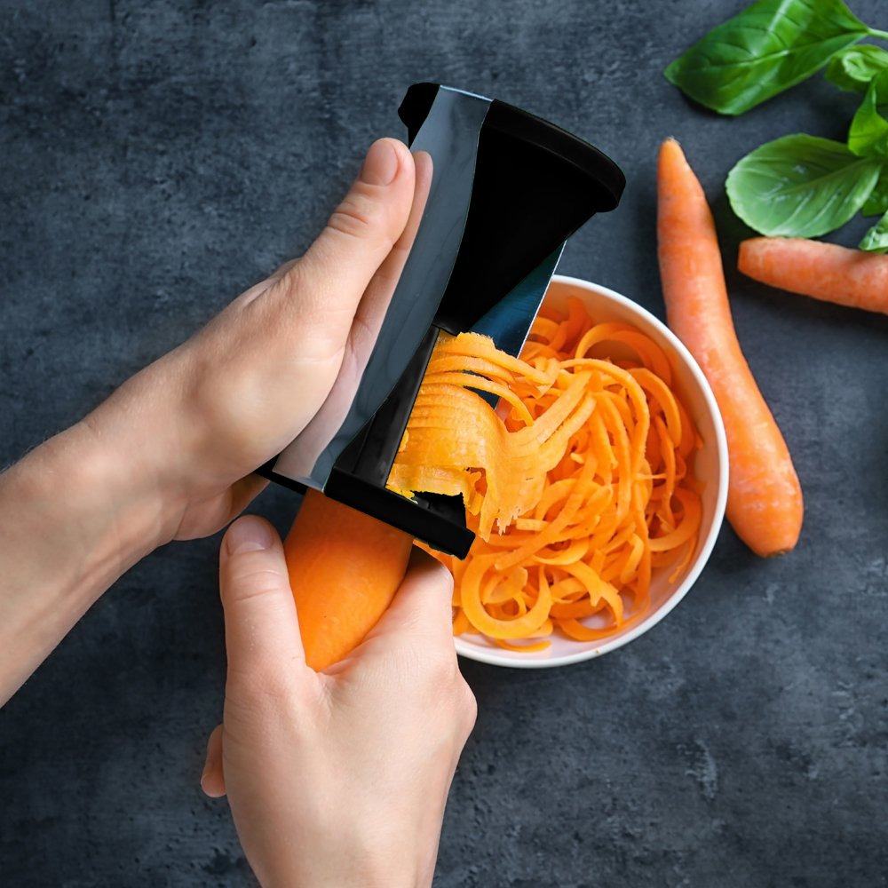 Com o Cortador de legumes em espiral Fackelmann você consegue fatiar os alimentos em diferentes espessuras de fios julienne. Seu corpo é fabricado em polipropileno e suas lâminas em aço inoxidável que garante maior qualidade e duração. Com 2 bocas de corte e formato anatômico, reduz o contato direto com as mãos.