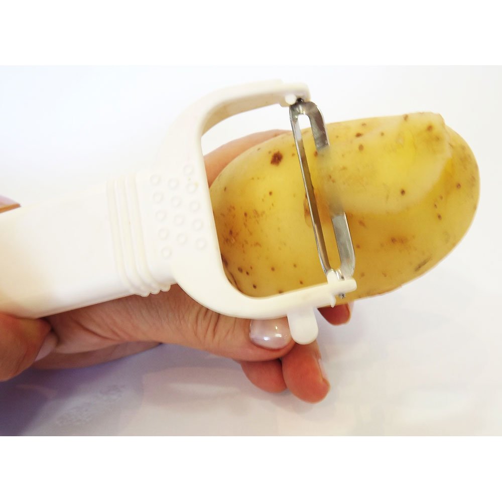 Descascar alimentos pode ser mais fácil e prático com o Descascador de Legumes da Décor-Útil. Com lâminas de aço inox de altíssima qualidade, foi projetado para deslizar e descascar retirando apenas o essencial, evitando o desperdício. Em sua lateral há um extrator de nódulos e imperfeições para batatas e outros. Tem dimensões de 15,5 x 7 cm, está disponível na cor lilás e é indicado para quem busca charme e praticidade para afazeres da cozinha.