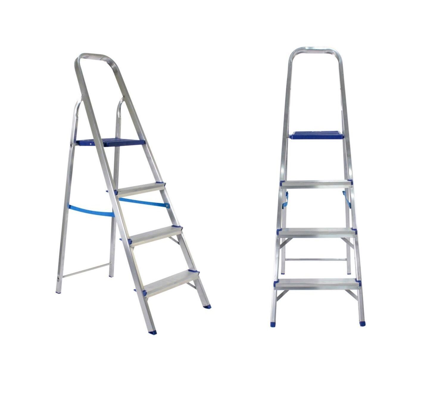 A escada dobrável de 4 degraus permite que você alcance locais de difícil acesso e assim possa fazer a sua atividade com calma e correção, além de fácil de guardar em qualquer lugar, a escada é feita como uma estrutura de tubos de alumínio e peças plasticas de polipropileno. É uma ferramenta muito resistente ao uso e muito fácil de ser limpa.