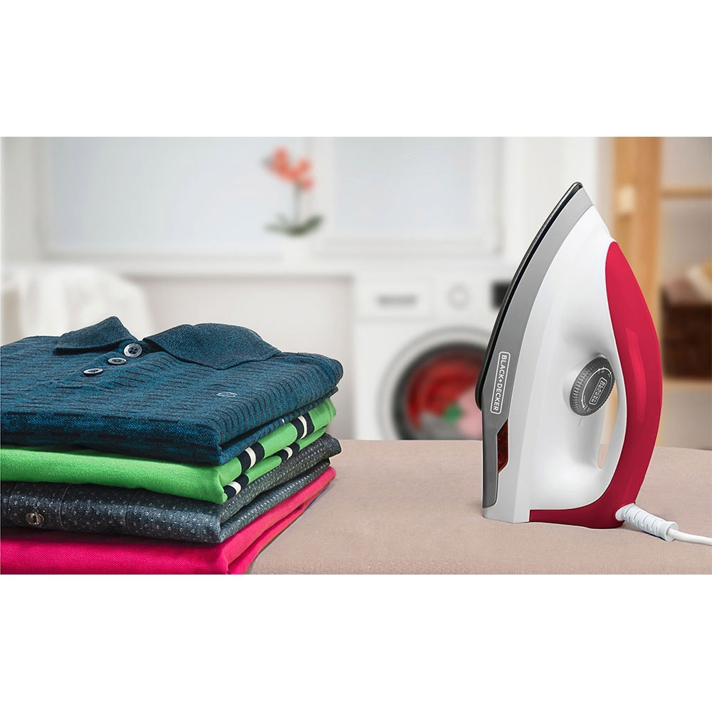 Ferro de Passar Black + Decker F300BR com potência de 1000w e voltagem 127v. Com design tradicional, alça ergonômica e protetor de cabo anatômico com giro de 360°, passa a seco permitindo selecionar a temperatura ideal para cada tipo de tecido. Tem sua base em alumínio polido, antiaderente e poupa-botões em toda a lateral. Além disso, conta com tecnologia que evita superaquecimento e base traseira para apoio. Cuide da durabilidade das suas roupas com o Ferro de Passar Elétrico Black + Decker F300BR A Seco.