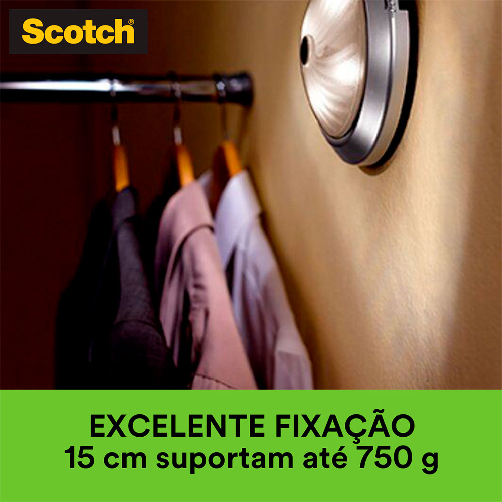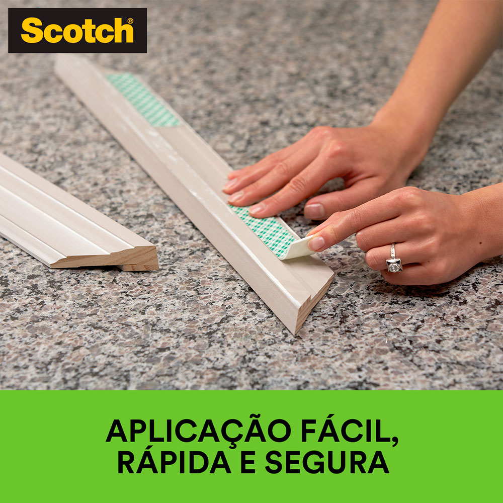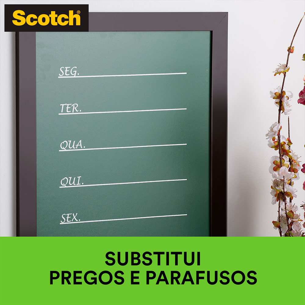Fita Fixa Forte Dupla Face Ambiente Interno Scotch 3M é ideal para ser aplicada em superfícies lisas em ambiente interno e possui fixação permanente. Perfeita para pendurar canaletas, espelhos e objetos de decoração sem ter que recorrer ao martelo. É recomendada para superfícies limpas, lisas e secas. Para utilizá-la, basta cortar a quantidade de fita necessária para suportar o peso do objeto e aplicá-la no verso, pressionando a fita firmemente por alguns segundos. Depois, retire a proteção na outra face, aplique na superfície desejada e pressione por alguns segundos. Seu poder de fixação a cada 15 cm de fita suportam até 750g. Você não precisará mais encher sua casa de furos e pregos toda vez que quiser pendurar alguma coisa.