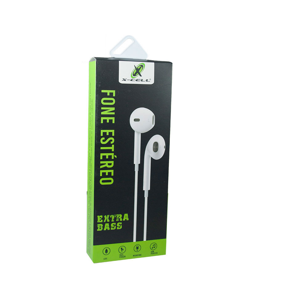 Leve e confortável, o fone de ouvido intra-auricular com microfone da X-Cell reproduz o melhor das suas músicas favoritas com a tecnologia extra bass. Você ouve seu som predileto com áudio super claro e graves profundos. Hands free, permite que você atenda chamadas sem precisar tirá-lo. Com cabo de 1,2m, tem conector P2 (3,5mm).