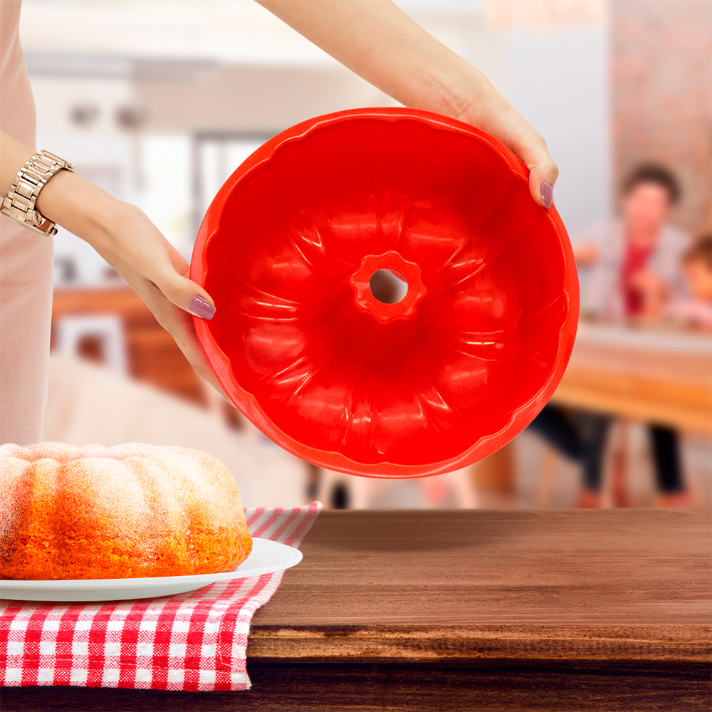 A Forma de silicone redonda Uny home é perfeita para assar pudins, bolos e tortas. Produzida em silicone, possui furo no meio e é flexível podendo ser usada em micro-ondas, freezers, fornos elétricos e a gás. Não há necessidade de untar, resistente a temperaturas de -40 até 240°C. Fácil de guardar, usar e higienizar.