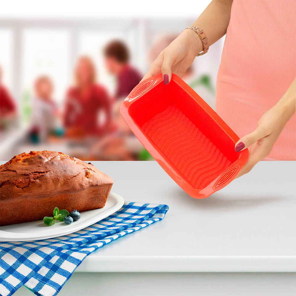 A Forma de silicone retangular Uny Gift é ideal para preparar bolo inglês, com fundo listrado que dá um ótimo acabamento a sua receita. Resiste a temperaturas de -50 até 240°C, podendo ser usada em micro-ondas, freezers, fornos elétricos e a gás. Em silicone, não tem necessidade de untar e podem ser dobradas na hora de guardar, sem danificar. Antiaderente, flexível e fácil de lavar. Esfria facilmente após o uso.