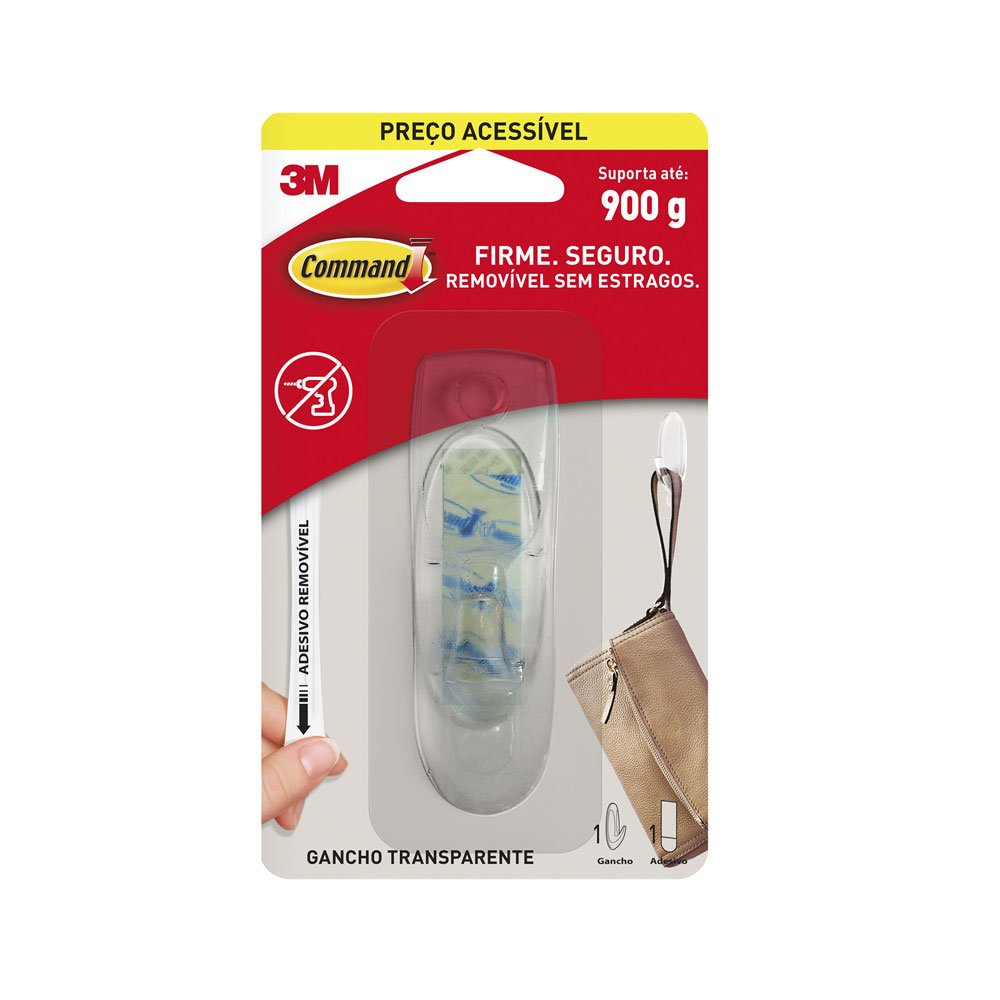 Chega de furar as paredes, portas e armários para pendurar suas bolsas, chapéus e acessórios. O gancho adesivo de plástico incolor da 3M não danifica as superfícies, mantendo a tintura da sua parede e móveis intacta. Com tecnologia exclusiva de fixação, suporta até 900g e pode ser reutilizado com os refis adesivos. Pendure o que você quiser com praticidade e sem furos.