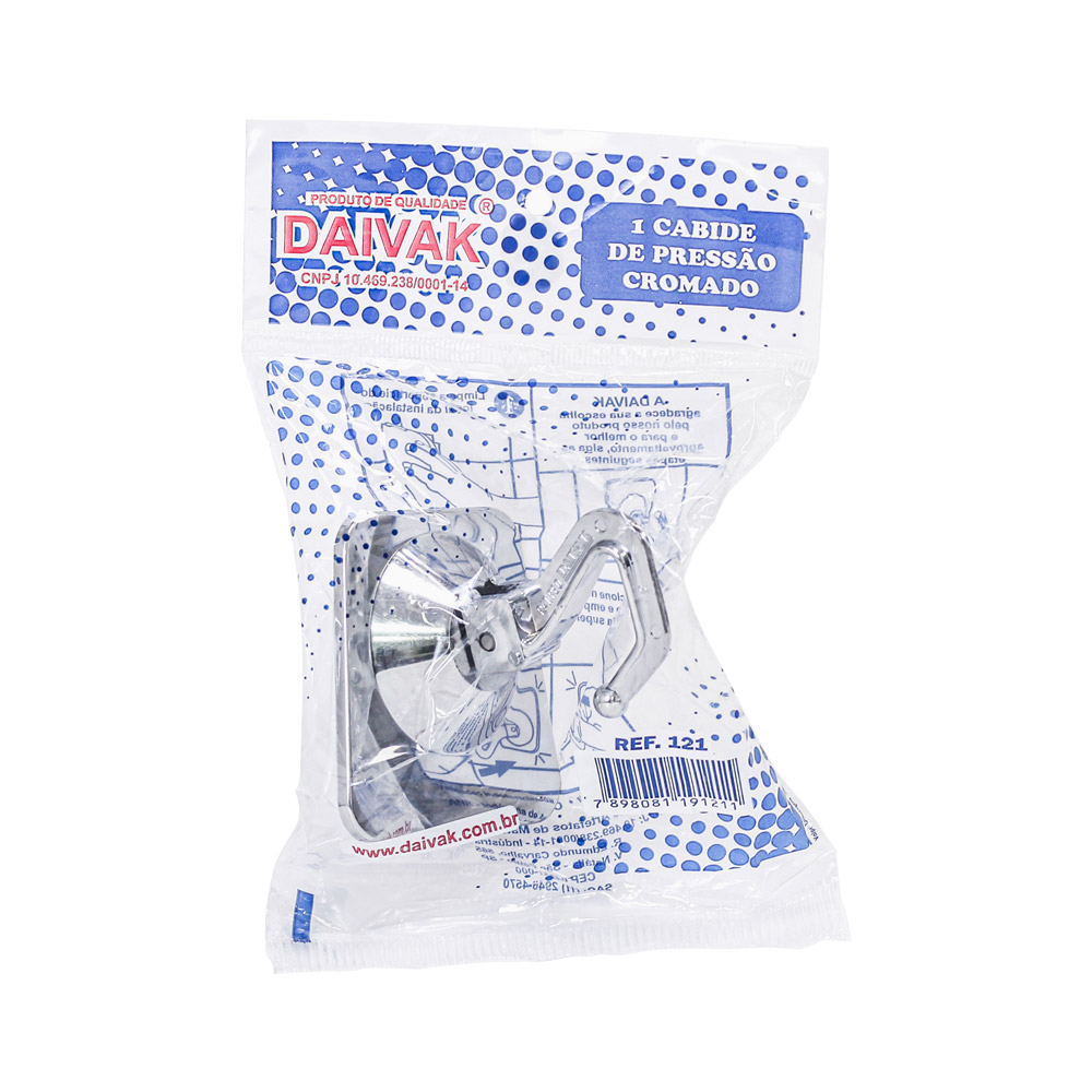 Gancho de Pressão Cromado com Ventosa Daivak SKU: 4443314