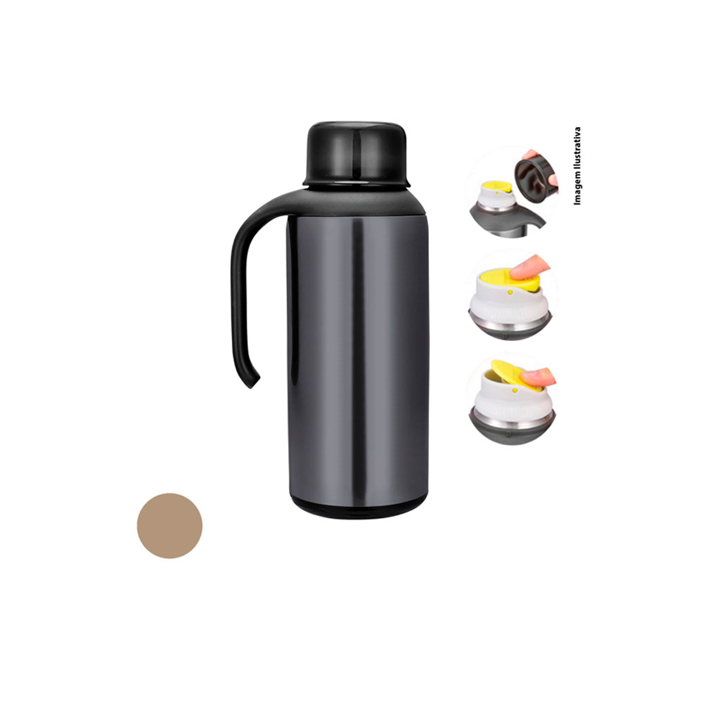 A Garrafa Térmica com Alça Inox Uny Gift é ideal para manter a temperatura de bebidas frias ou quentes. Produzida em aço inox, possui alça, tampa e seu sistema de abertura é de click. Com capacidade para 1,5L e 30,4 cm de altura, ela possui o tamanho perfeito. Bonita, útil e fácil de limpar.