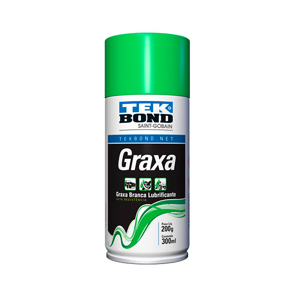 Graxa Lubrificante Spray Tekbond na cor branco, utilizada em correntes e rolamentos de média velocidade, pinos, luvas, juntas, etc. É um lubrificante de alta resistência e possui película de proteção contra emperramento de peças por empoeiramento.