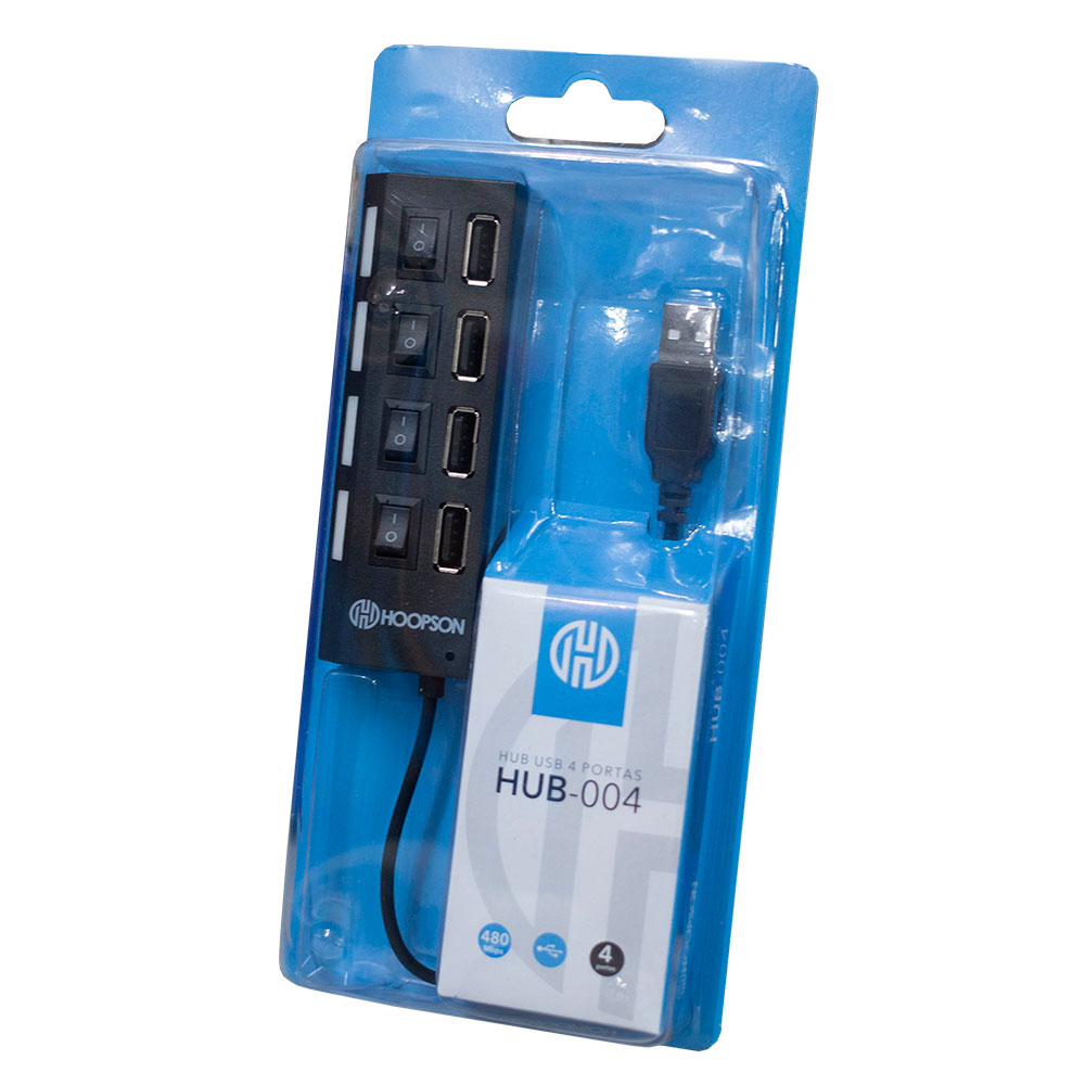 Hub USB 2.0 4 Portas com Led Indicador Hoopson SKU: 2144796