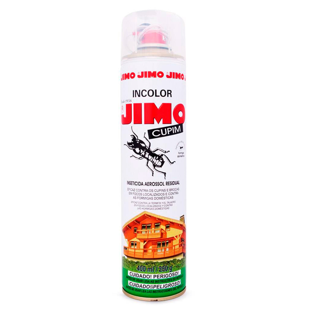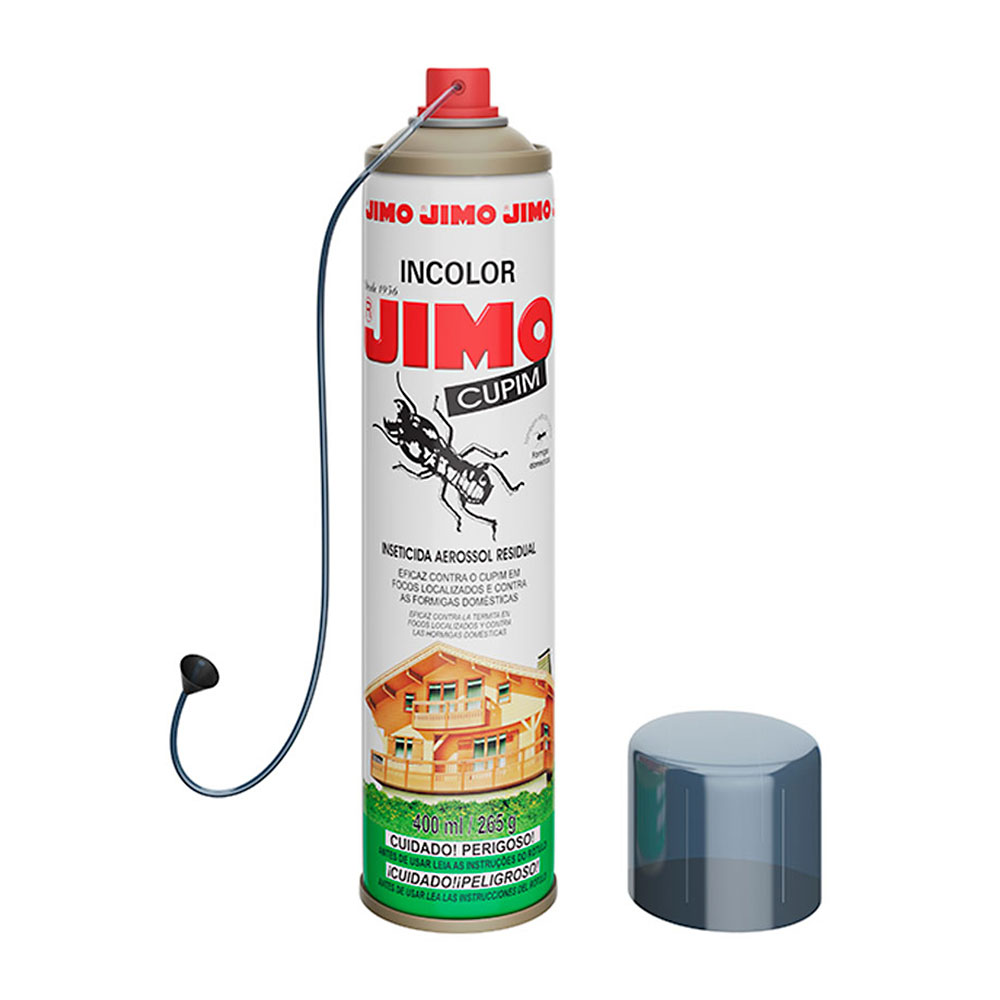 Ideal para combater focos localizados, o inseticida aerossol mata cupim Jimo combate também brocas e formigas em pequenas peças de madeira. Com alto poder de penetração, possui tubo com agulha injetora e protetor antirrefluxo para evitar respingos.