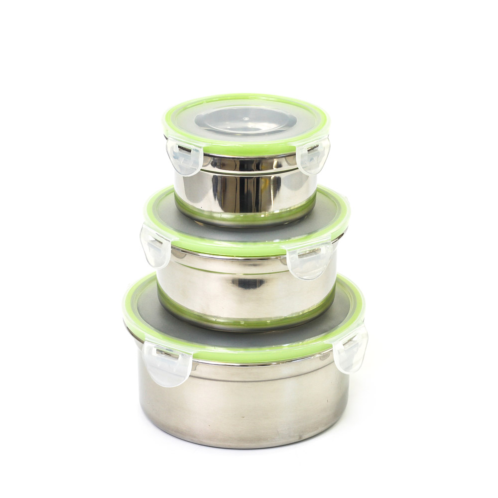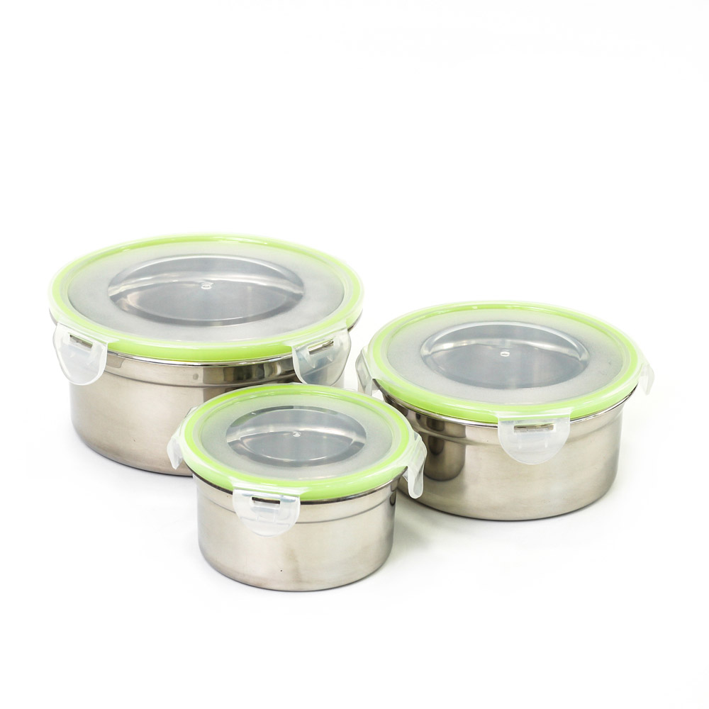 O Jogo de Potes de Inox Uny Home vai facilitar a armazenagem de alimentos de forma higiênica e prática. Com tampa plástica, leva beleza e versatilidade à cozinha. São 3 potes redondos de tamanhos diferentes: pote P com 10,5 x 5cm; pote M que mede 13 x 5,5cm e pote G de 15,5 x 6,5cm.