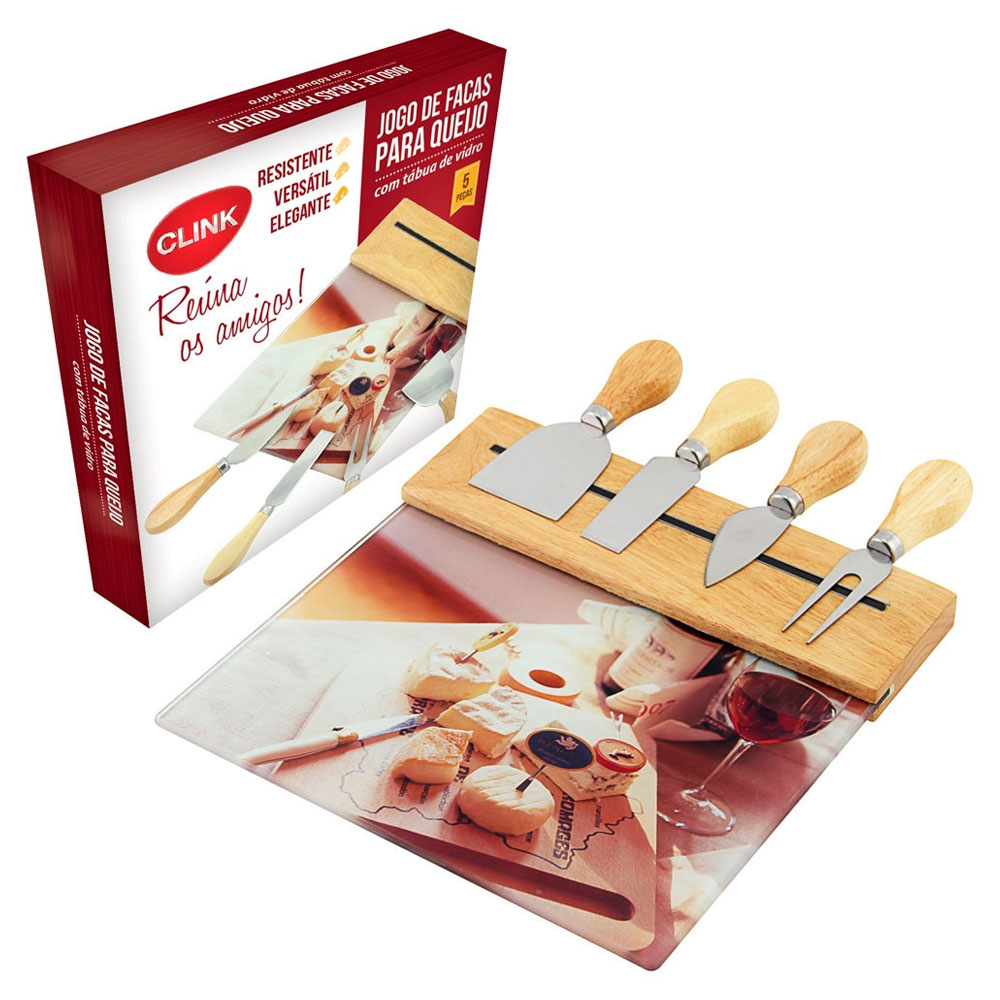 Kit Cortador de Queijo com Tábua Clink 5 Peças