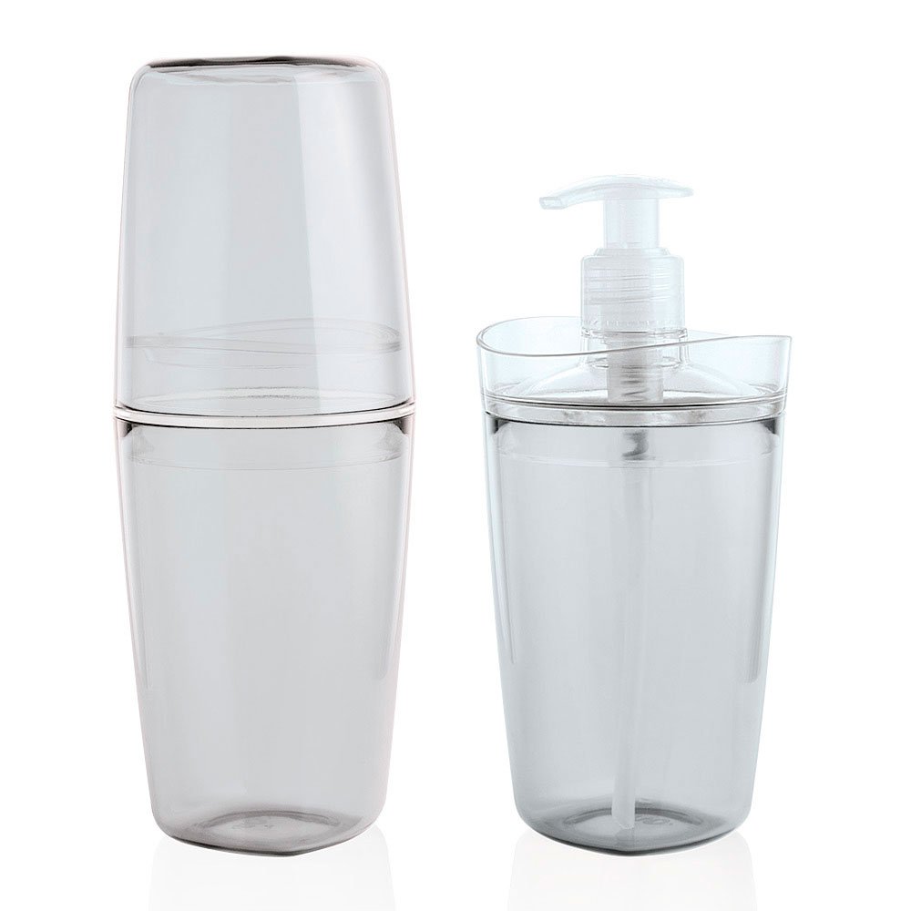 O Kit de Banheiro da OU é formado por 1 porta-escova para até 4 escovas de dente e 1 porta-sabonete líquido para 400ml. Feito de acrílico incolor, é resistente durável e irá manter seu banheiro organizado. Ideal para qualquer decoração.