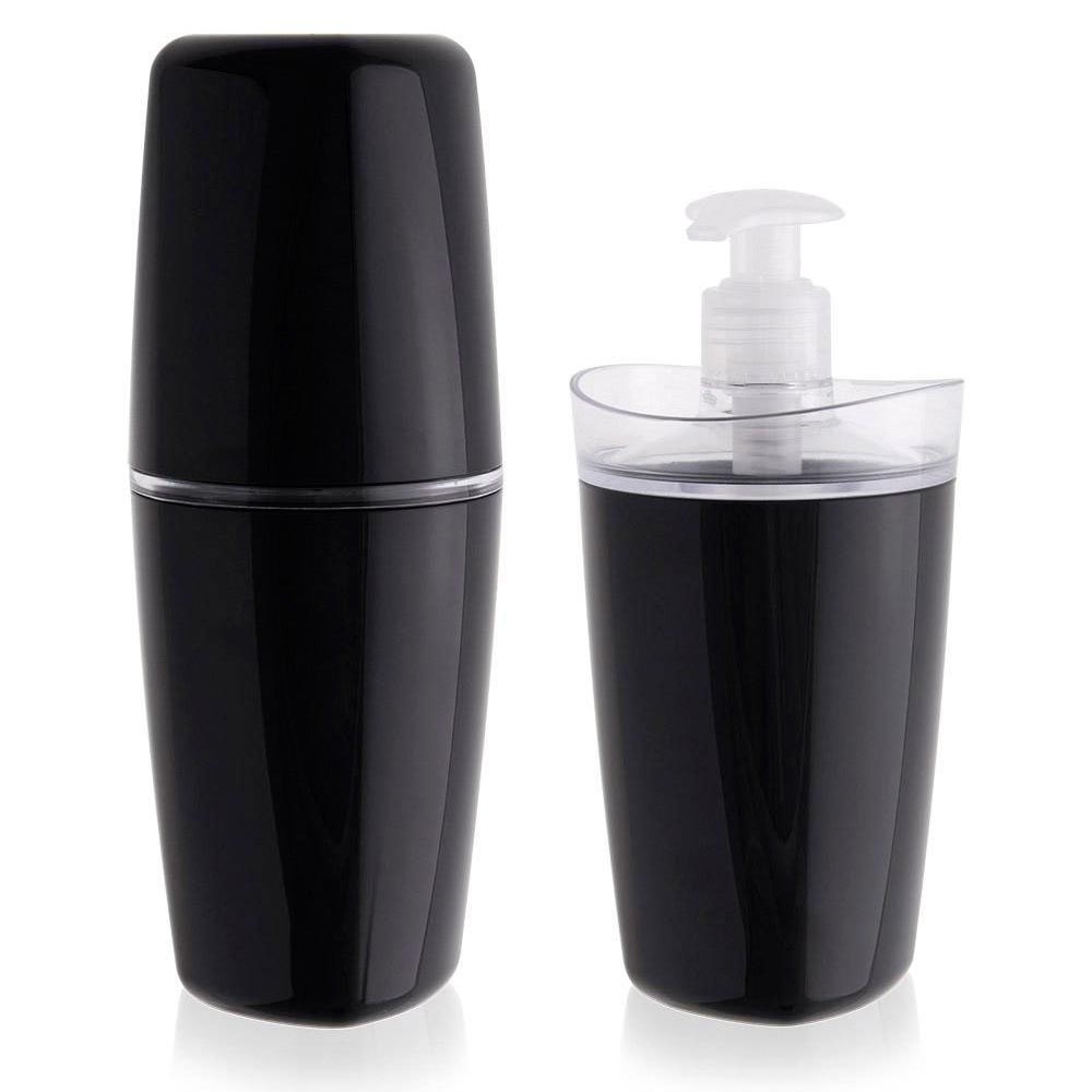 O Kit de Banheiro da OU é formado por 1 porta-escova para até 4 escovas de dente e 1 porta-sabonete líquido para 400ml. Feito de acrílico preto, é resistente durável e irá manter seu banheiro organizado. Ideal para qualquer decoração.