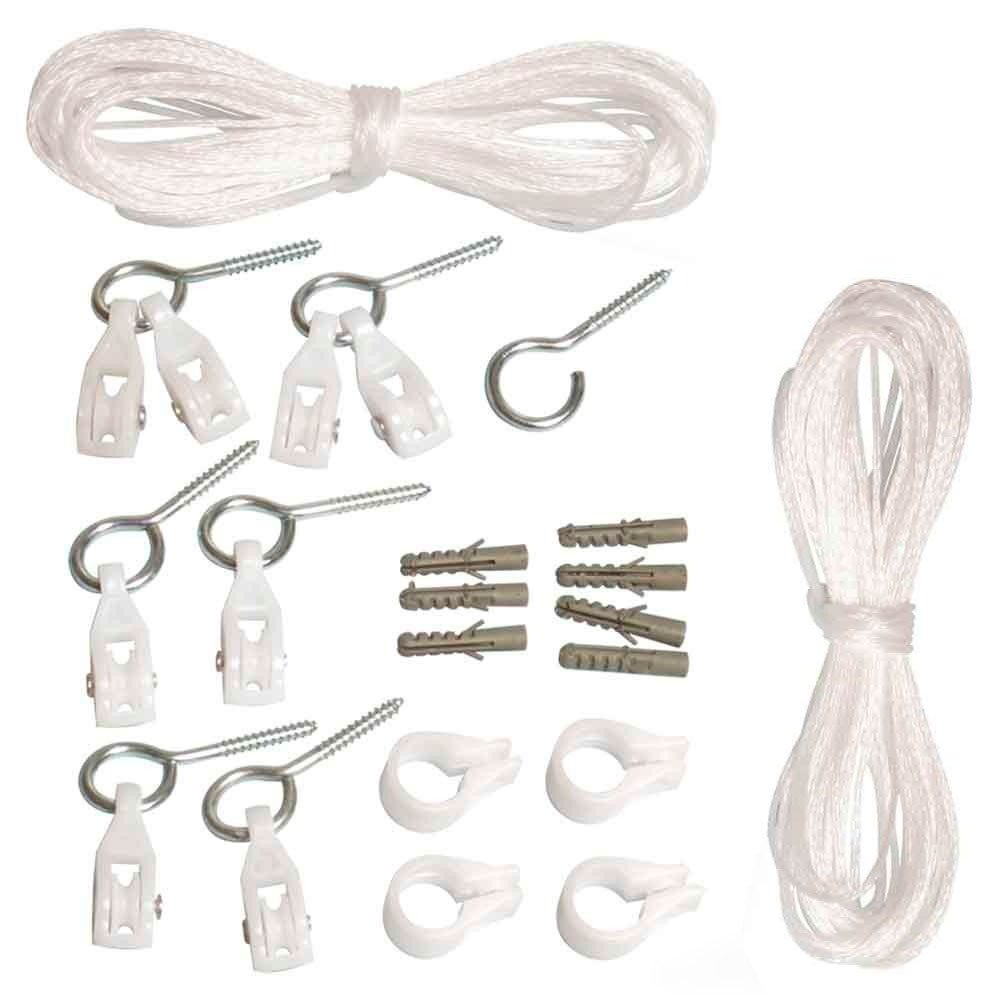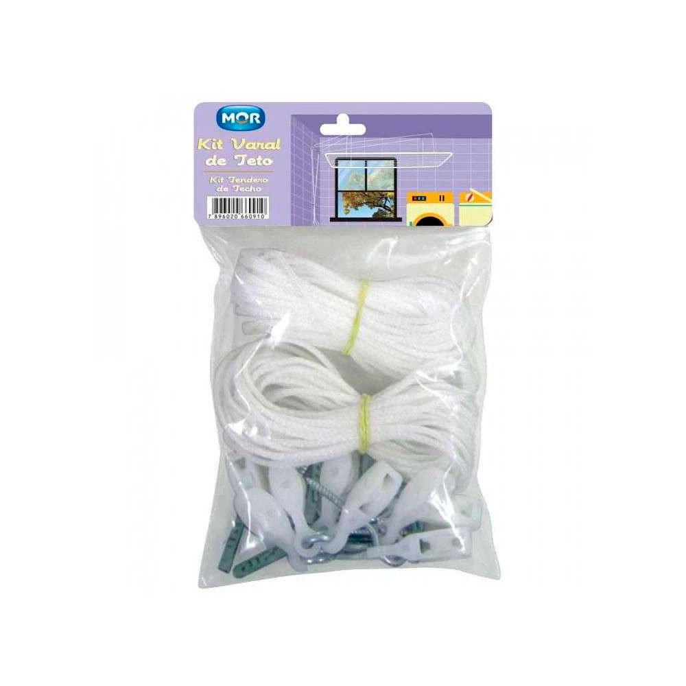 Com o Kit Fixação de Varal de Teto Mor você será capaz de renovar seu varal de teto, principalmente em apartamentos. O jogo contém 16 peças: 2 cordas de nylon de 6,5 m cada, 4 roldanas plásticas simples com ganchos para teto, 2 roldanas plásticas duplas com ganchos para parede, 1 gancho para regular a altura, 7 buchas plásticas. Perfeito para deixar sua lavanderia sempre organizada.