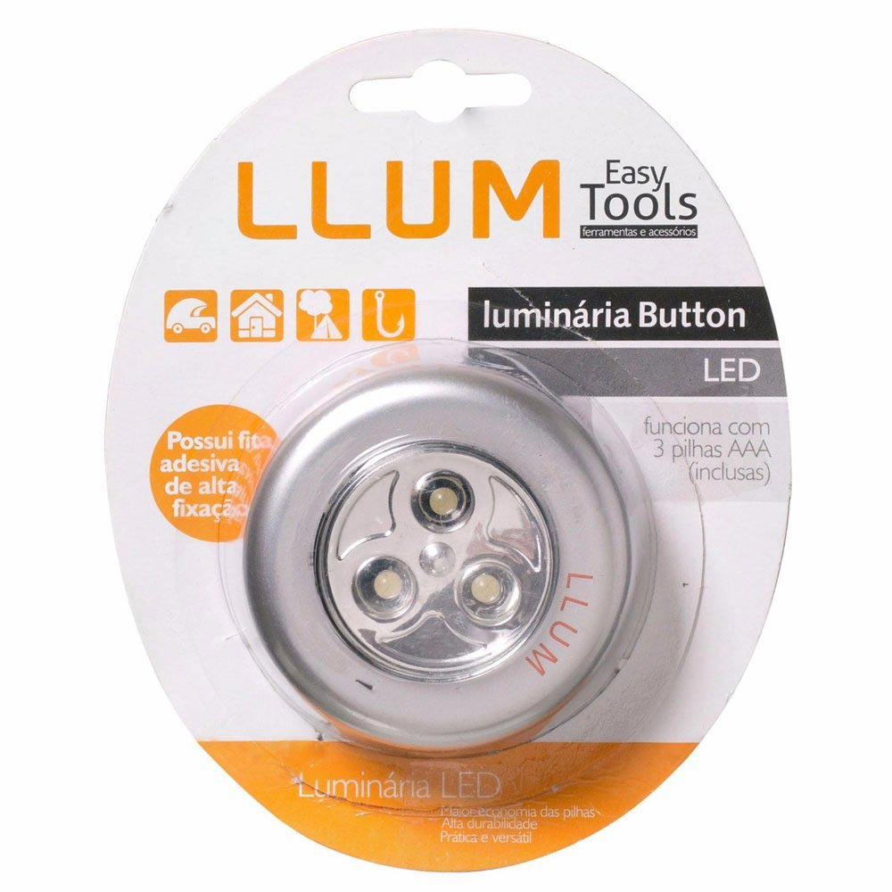 A Luminária Leds Branca Llum é ideal para armários, guarda roupas e outros ambientes com baixa iluminação, sendo ligada e desligada com um simples toque na lente. A fixação é feita através de adesivos, tornando prática e evitando o uso de parafusos ou pregos. Produzida em plástico prata com 3 LEDs, com potência de 0,3w e alimentada por 3 pilhas AAA.