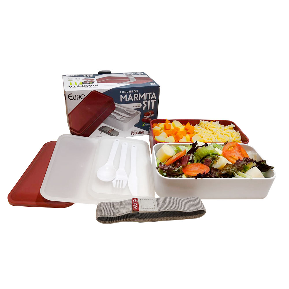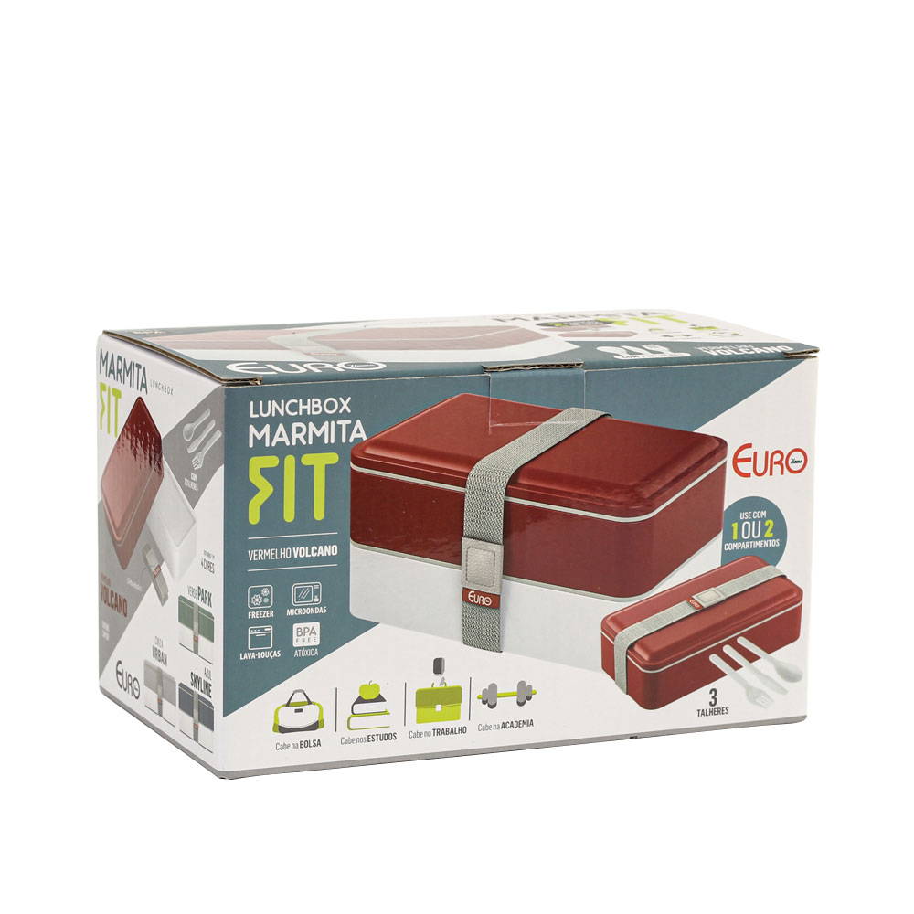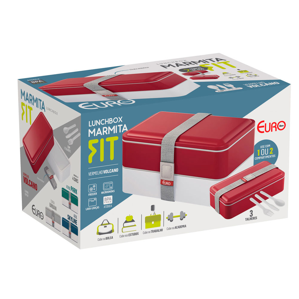 Marmita Lunch Box Fit de Plástico com Talher Vermelha Euro Home SKU: 2084988
