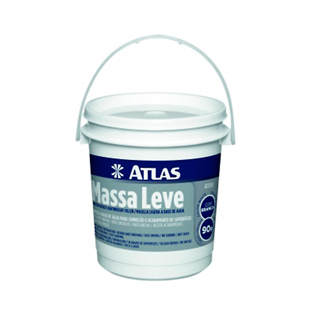 A massa leve corretiva Atlas foi desenvolvida para correção e acabamento de superfícies. Use a massa reparadora para preencher buracos e rachaduras em paredes internas e externas. À base de água, não deixa cheiro e não possui solventes, fácil de aplicar, não mancha, não encolhe e aceita qualquer tipo de tinta por cima. Uso indicado para alvenaria, madeira e gesso.