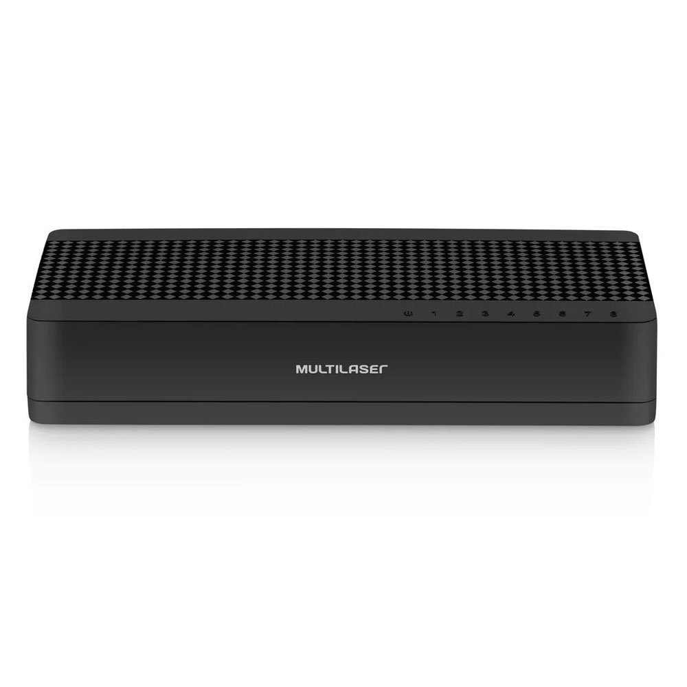 O Mini Switch 100mbps Preto da Multilaser tem 8 Portas e é ideal para conectar roteadores ou computadores no switch por meio de um cabo RJ45, e ter disponível múltiplas redes.