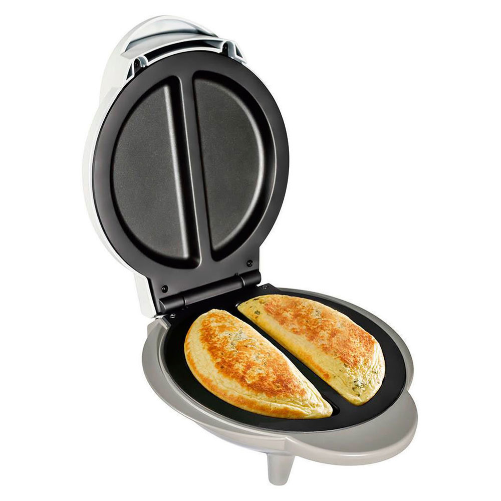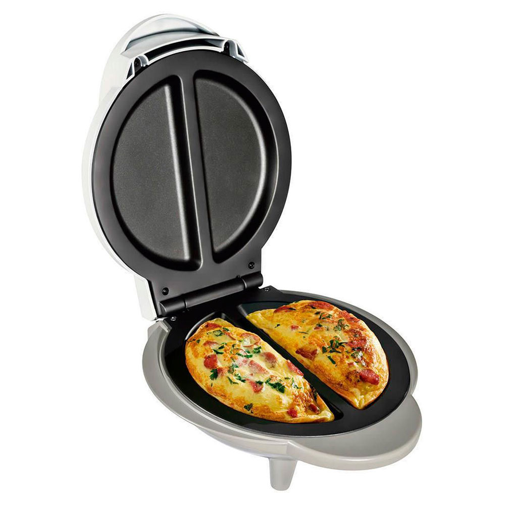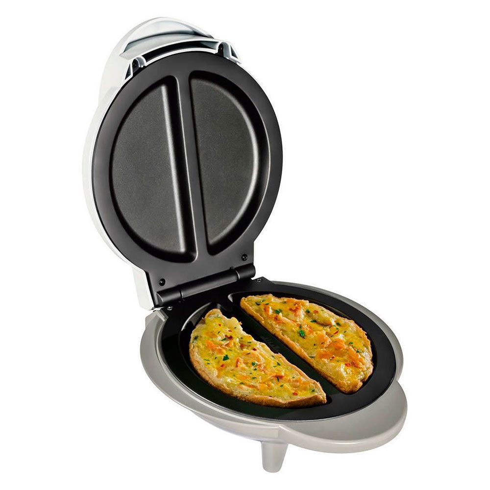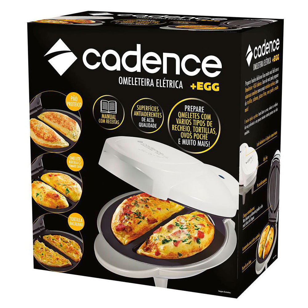 Faça deliciosos e saudáveis omeletes com a Omeleteira Elétrica Cadence Egg OML100. Basta bater os ovos, colocar os recheios da sua preferência e, em poucos minutos, a sua refeição estará pronta. Possui espaço para dois omeletes que permitem que você use sua imaginação para criar diferentes combinações com carnes, frango, legumes, queijos e outros. Suas chapas são antiaderentes de alta qualidade que não deixam o alimento grudar. Sua tecnologia também facilita a limpeza e garante a durabilidade do produto. Tem LEDs indicadores de ligado e aquecimento, alças que não esquentam, porta-fio e pés antiderrapantes. Acompanha uma espátula prática para servir e tem potência de 1000w e voltagem de 127v.