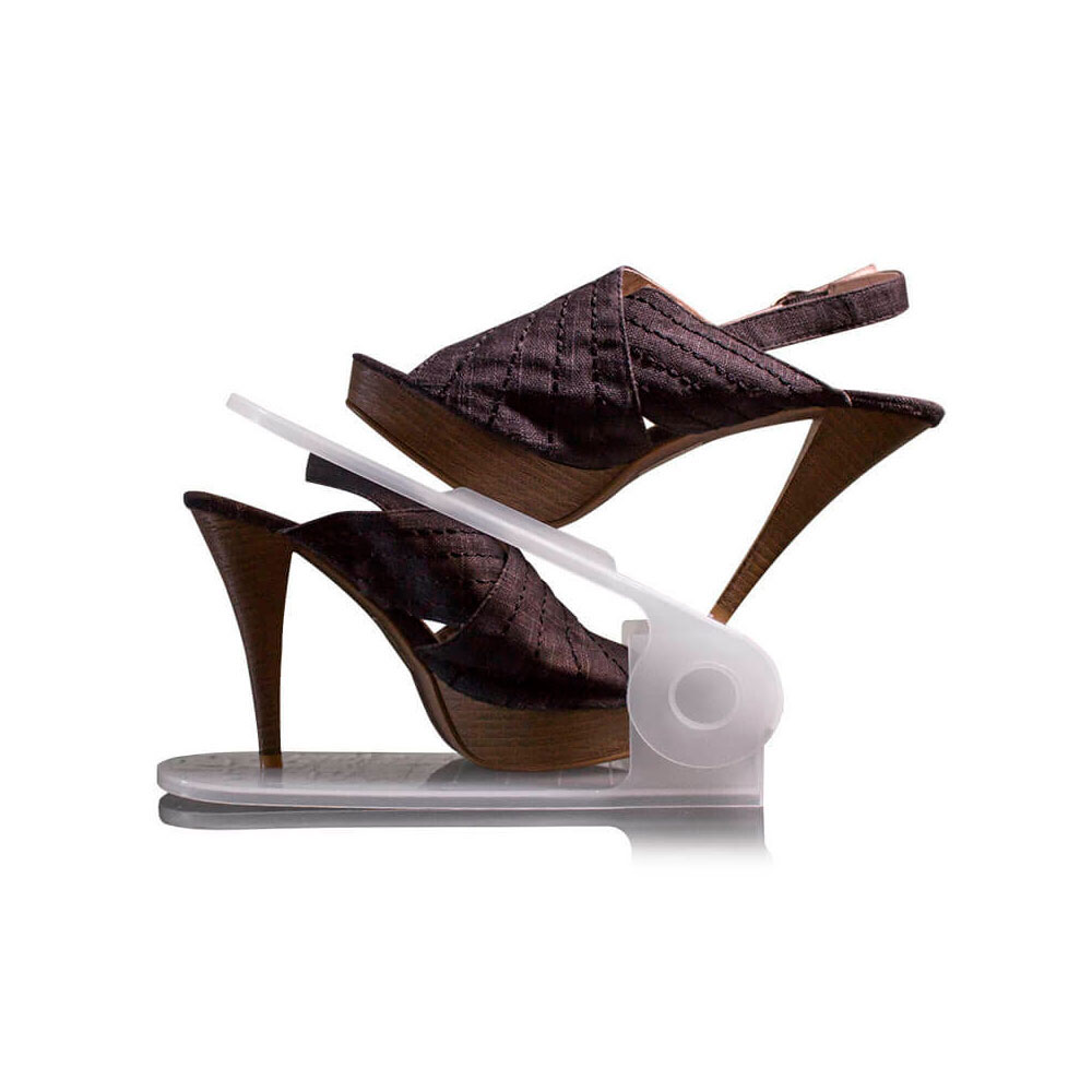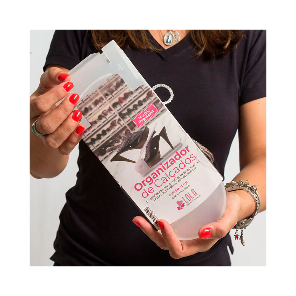 O Organizador de Sapato Rack Regulável da Lola Decor é ótimo para manter seus sapatos organizados, podem ser usados no closet, na sapateira, no armário, deixando os seus sapatos sempre visíveis, de fácil acesso e limpos, uma vez que não ficarão sobrepostos. É confeccionado em plástico, fácil de limpar e possui regulagem, permitindo assim que seja usado todo tipo de sapatos, desde rasteirinhas até sandálias de salto alto com meia pata.