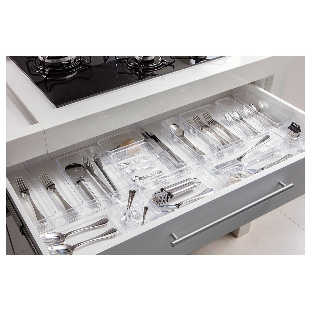 O Organizador Multiuso em Acrílico Paramount da linha Diamond, une praticidade e beleza, além de ser resistente e moderno. Ideal para deixar seus acessórios ou objetos de forma mais organizada, seja na gaveta da cozinha, quarto, banheiro, entre outros. Possui material de ótima qualidade e tamanho de 22,5×7, 5cm, otimize os espaços na sua casa e mantenha seus objetos pessoais organizados e com fácil acesso!