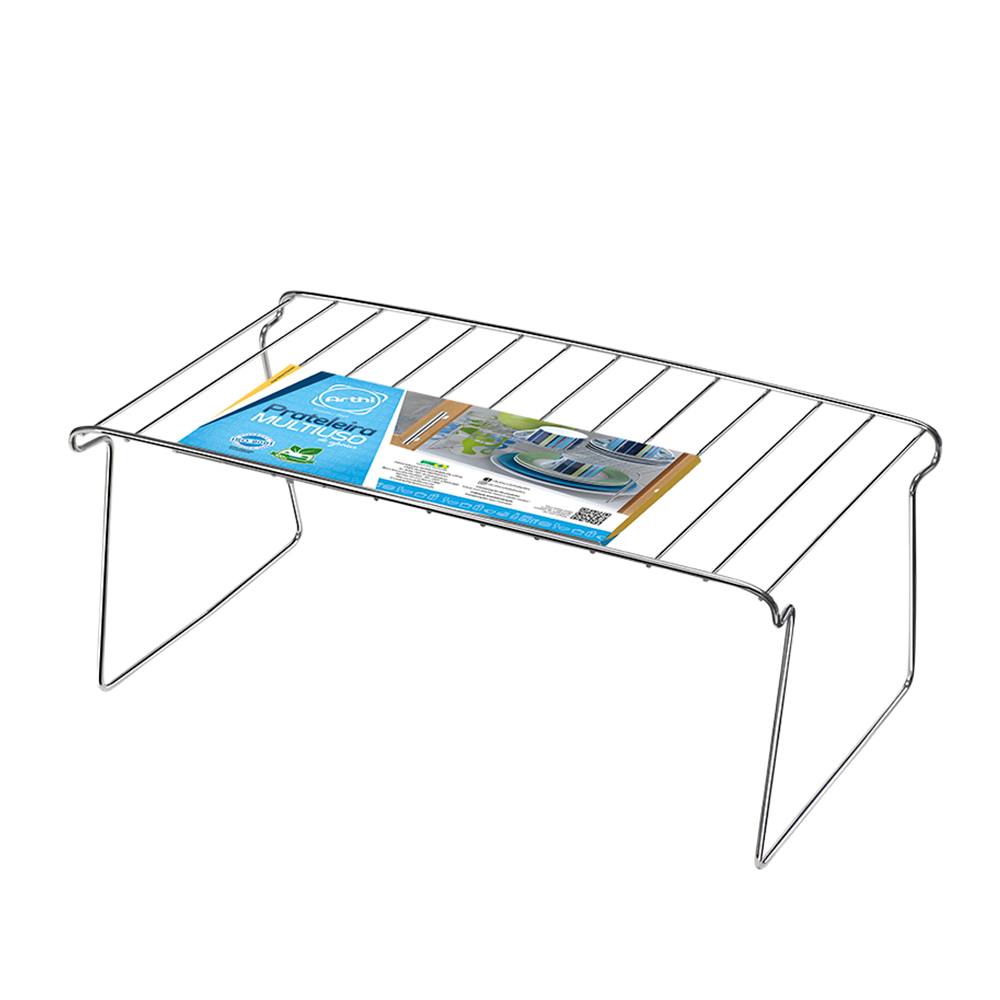 Com o Organizador Prateleira Arthi mantenha os objetos da sua cozinha sempre em ordem de maneira prática. Produzido em aço cromado com aproximadamente 35,7cm. Organize os objetos em dois andares distintos, possibilitando criar combinações de acordo com a sua necessidade, ganhando masi espaço.
