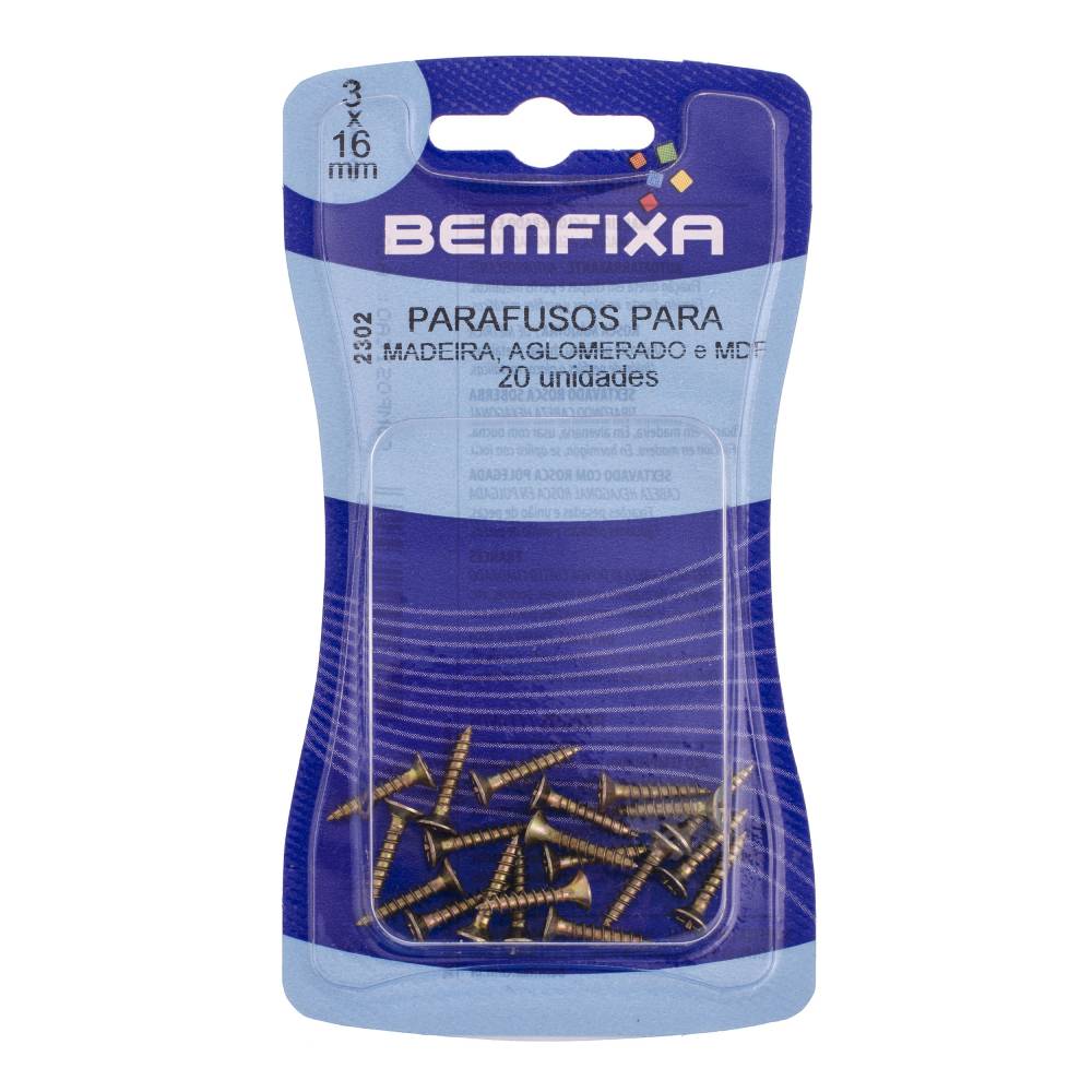 Parafuso de Aço para Madeira 3×16 mm Bemfixa 20 unidades SKU: 551112