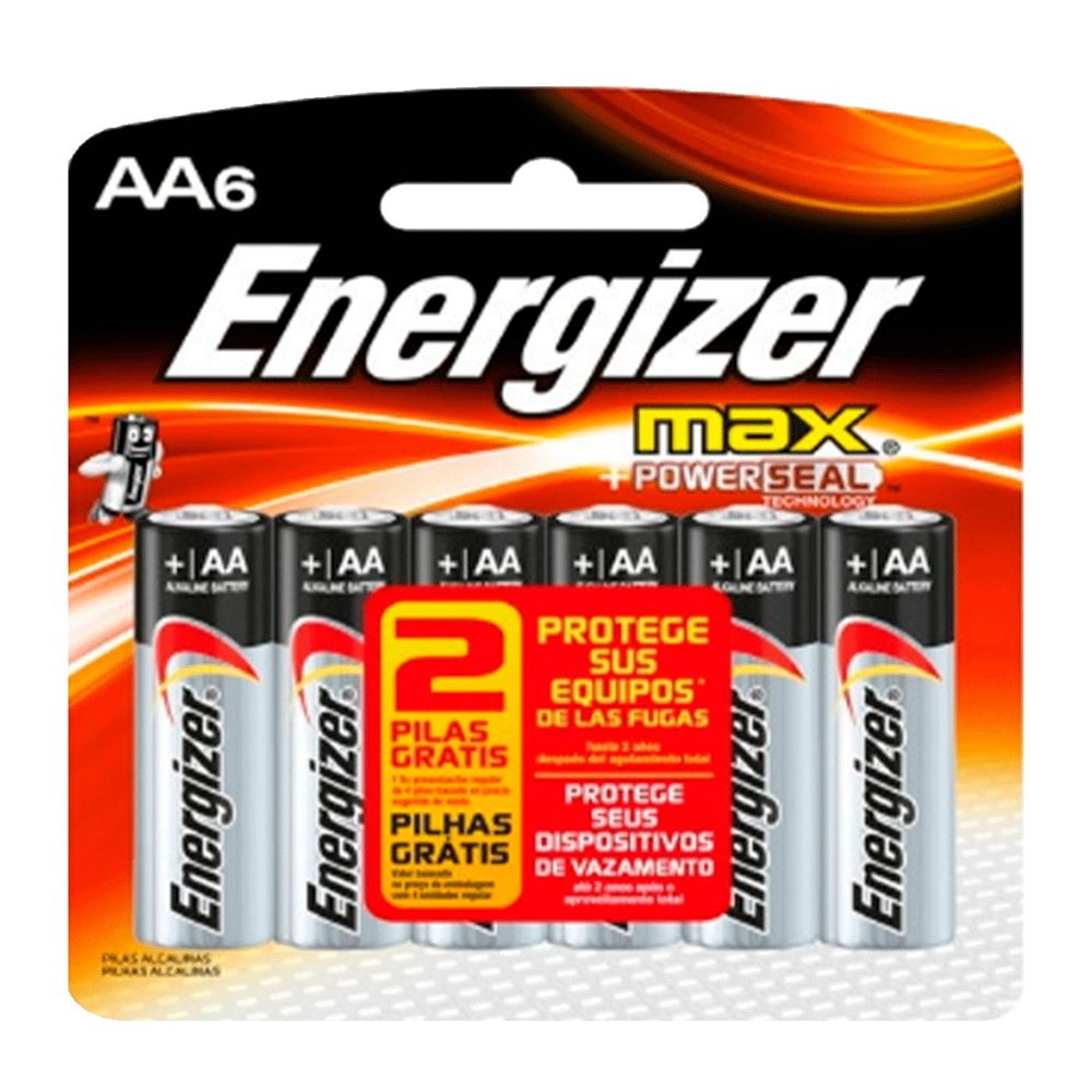 Pilha Alcalina AA Max Energizer 6 Unidades SKU: 2105584