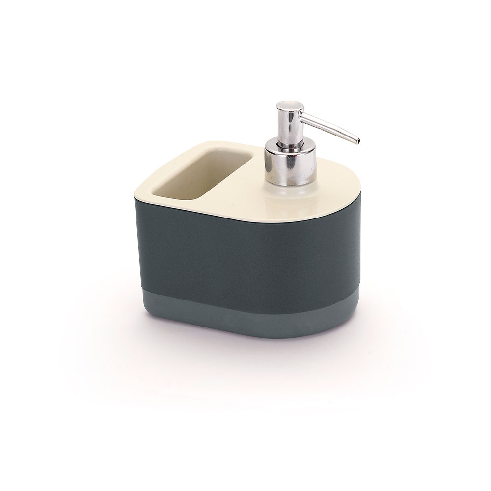 Porta Detergente com espaço para Esponja é ideal para quem busca organização e praticidade. Deixe sua pia mais higienizada e atraente. Feito de plástico de alta qualidade, tem bico dosador para proporcionar economia na hora de utiliza-lo. Está disponível na cor branco com cinza e bege.