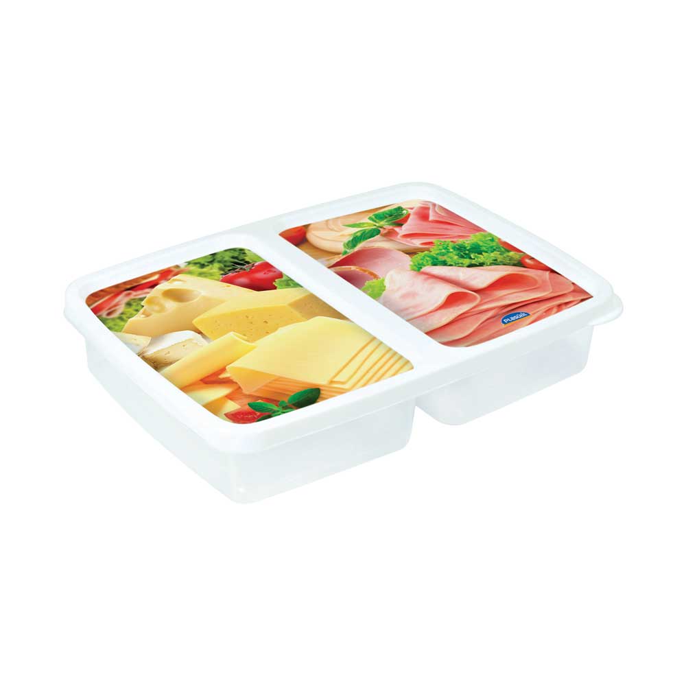 Porta Frios Duplo Retangular da Plasútil com tampa, muito resistente e fácil de lavar. Ideal para você armazenar corretamente os frios, prolongando sabor e estado de conservação. Produto leve, com tecnologia in label que não deixa a estampa da tampa desbotar. Feito de plástico, tem dimensões de 24,2 x 17,5 x 4,8 cm e capacidade máxima para até 1,1 litro. Otimize espaço na sua geladeira com este utensílio.