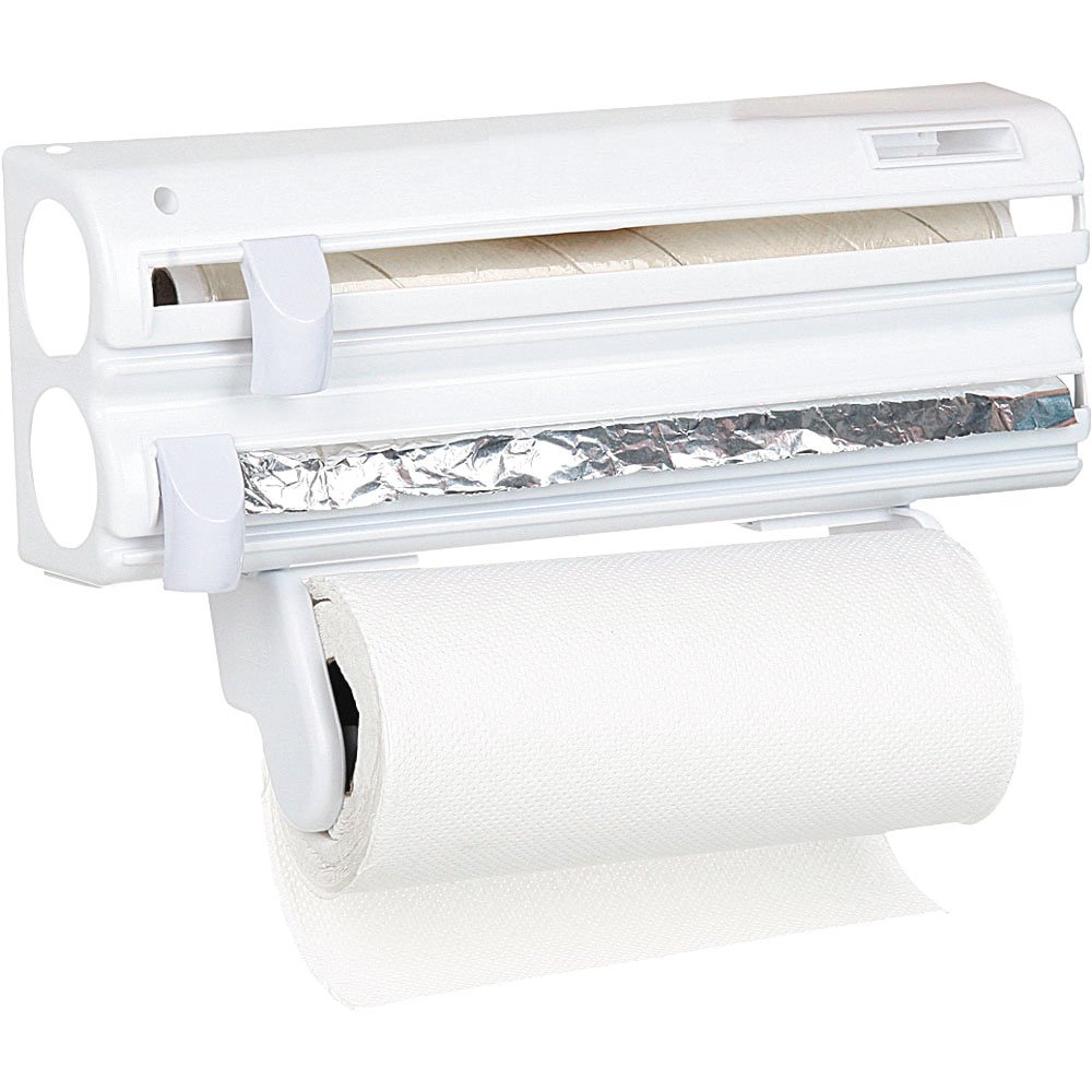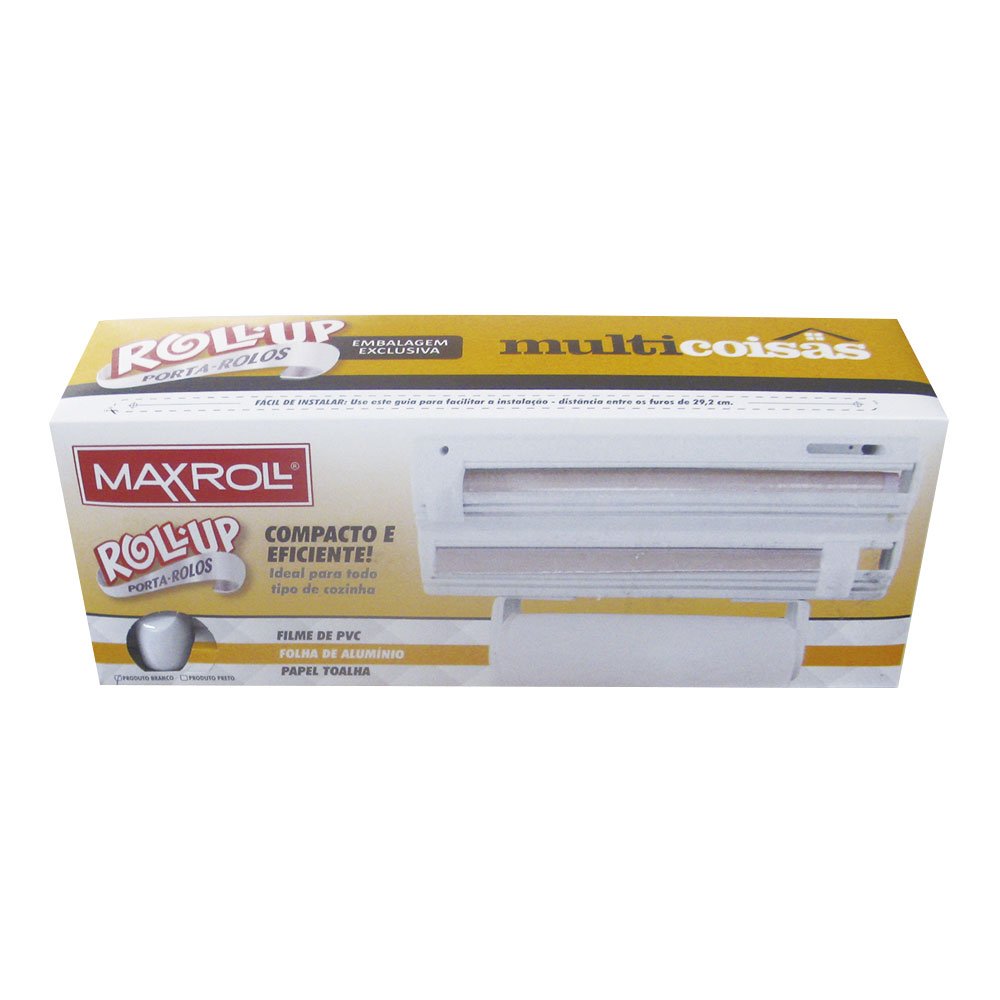 O Porta Rolos Roll Up MaxRoll é prático e útil, ideal para otimizar espaço na sua cozinha. Suporta rolos de filme PVC, folhas de alumínio e papel toalha. Confeccionado em plástico branco super resistente, possui cortadores independentes para rolo PVC e alumínio. Corta com fácilidade, podendo ser fixado na parede e regulado de acordo com o rolo.