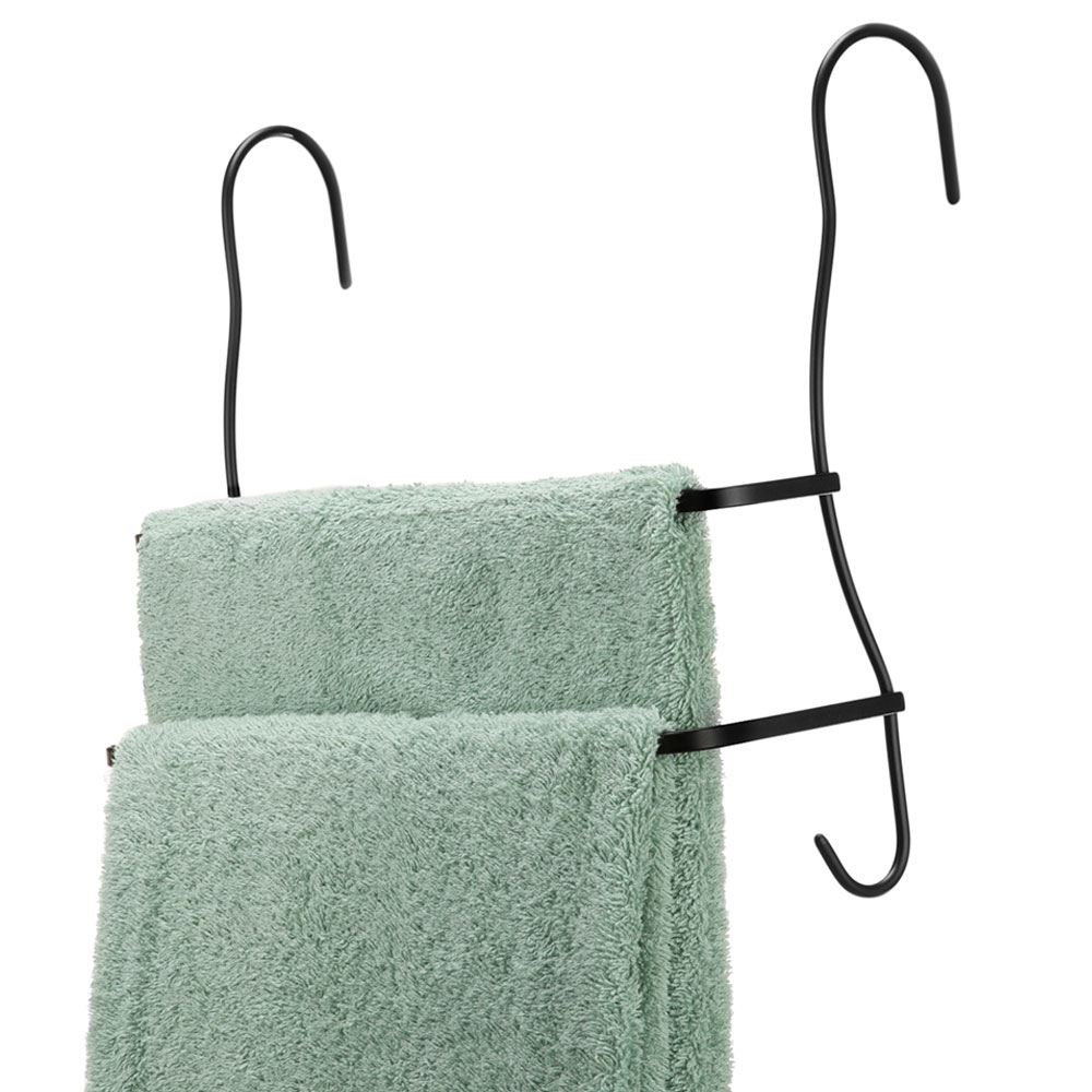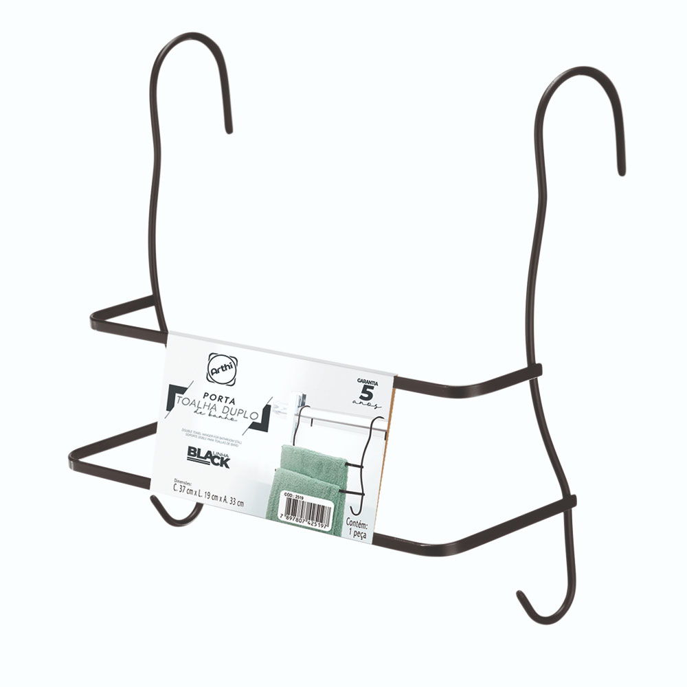Porta Toalha Arthi da Linha Black com suporte duplo e que se encaixa perfeitamente sobre o box, deixando as toalhas à mão na hora do banho. Produzido em aço com acabamento preto acetinado, possui aplicação de verniz que aumenta a durabilidade e não descasca. Seu design inovador vai trazer não só praticidade, mas também estilo e modernidade para o seu banheiro!